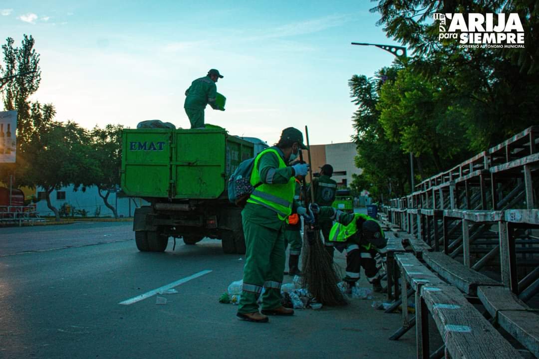 Agencias/EL ANDALUZFortaleciendo el Turismo en la ciudad de Tarija, la Empresa Municipal de Aseo de Tarija (EMAT), realiza la limpieza de plazas, parques y avenidas dónde se están desarrollando las actividades del Carnaval Chapaco 2024, para lo cual se procedió a recoger alrededor de 10 tonelada de basura el jueves de Comadres. Se realizará un operativo en las actividades carnavaleras.El responsable de Emat, Carlos Castillo, informó que, se realizó el Plan Operativo de Limpieza por parte de Emat fortaleciendo así el Turismo en la ciudad de Tarija, por tal motivo se ha cumplido en su totalidad la limpieza en todos los lugares donde se han concentrado, cómo es la Plaza Principal, Parque Temático, avenida Integración y el parqueo del Mega Center, donde se pudo recoger alrededor de 10 toneladas de basura.“Hasta las 06:00 de la ciudad estaba totalmente limpia con el lavado respectivo, con el cual se ha desplegado más de 100 personas de las diferentes áreas y así se pueda cumplir con la población como corresponde”, dijo.Asimismo, agradeció a la población por haber cumplido con llevar su basura hasta los contenedores y recipientes, con lo que se fomenta a la buena educación.“Se pudo ver que los contenedores que se realizó de 240 mil litros canastillos que se han instalados en diferentes lugares, fueron bien utilizados con lo que la gente ha colaborado en la limpieza”, añadió.CarnavalUn total de 179 funcionarios de la Dirección Municipal de Aseo (EMAT) estarán destinados a cumplir el plan de acción con miras a cubrir el servicio de barrido y limpieza durante las diferentes actividades a cumplirse en el Carnaval Chapaco 2024.Castillo, hizo conocer que se trabajará en los días de Carnaval, excepto el martes, dónde sólo se tendrá turnos de emergencias, por lo cual la población tome sus previsiones y no saque su basura a las calles. Navegación de entradasProductores de cebolla se reunirán con el gobierno el 19 de febrero de 2024 Alcaldía de Tarija lanza convocatoria para la concesión de Residuos Sólidos para su industrialización y aprovechamiento