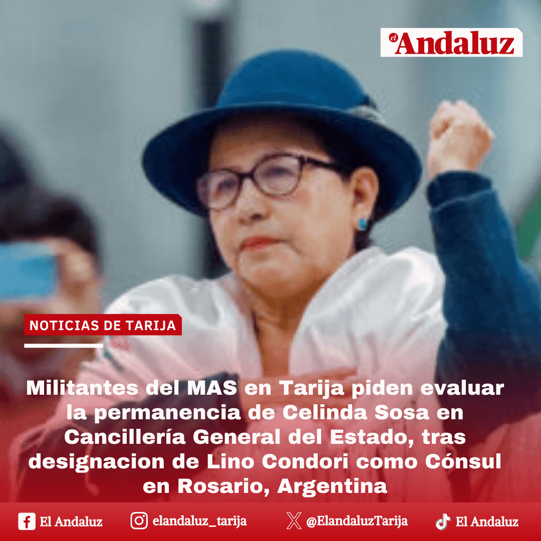 Militantes del MAS en Tarija piden evaluar la permanencia de Celinda Sosa en Cancillería General del Estado
