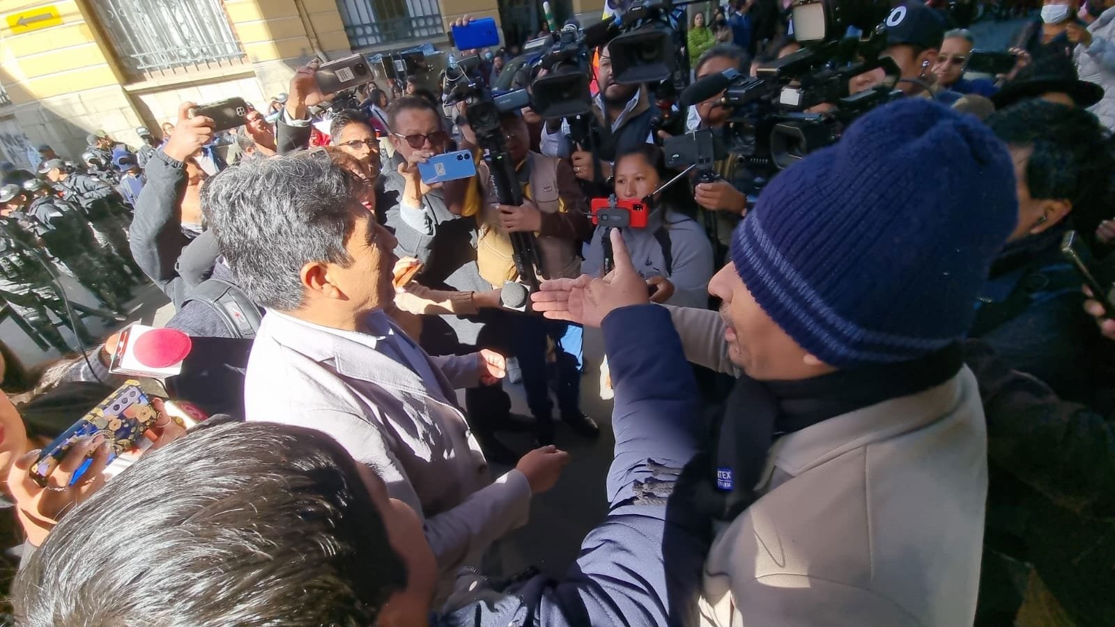 Natalia López/El AndaluzEste miércoles, las tensiones entre seguidores del expresidente Evo Morales y del presidente Luis Arce se hicieron evidentes en las puertas del Tribunal Supremo Electoral (TSE) en La Paz, en vísperas de un importante encuentro multipartidario. La concentración de ambos grupos generó una situación caótica, llevando al cierre de las vías circundantes en las calles Sánchez Lima y Pedro Salazar.Los enfrentamientos verbales entre los simpatizantes de ambos líderes políticos incluyeron gritos e insultos, intensificando la atmósfera de confrontación. Los seguidores de Luis Arce se vieron arrinconados, lo que les obligó a refugiarse en las instalaciones del Ministerio de Defensa cercano, destacando la creciente división entre los dos bandos.En medio de la tensión, los partidarios coreaban consignas de apoyo a sus respectivos líderes, Evo Morales y Luis Arce, exigiendo la presencia de estos en el encuentro multipartidario. Esta situación refleja la polarización política que actualmente se vive en el país, subrayando las diferencias dentro del mismo partido gobernante.El Tribunal Supremo Electoral tiene programado iniciar el encuentro multipartidario a las 10:00 am de este miércoles, un evento que pretende ser un espacio de diálogo y consenso. Sin embargo, las demostraciones de apoyo y los conflictos entre los seguidores de Morales y Arce subrayan los desafíos que enfrenta el proceso democrático en Bolivia. Navegación de entradasSector Salud Confirma Paro Movilizado de 120 Horas en Santa Cruz Extienden las vacaciones escolares en Bolivia por una semana adicional en todos los departamentos