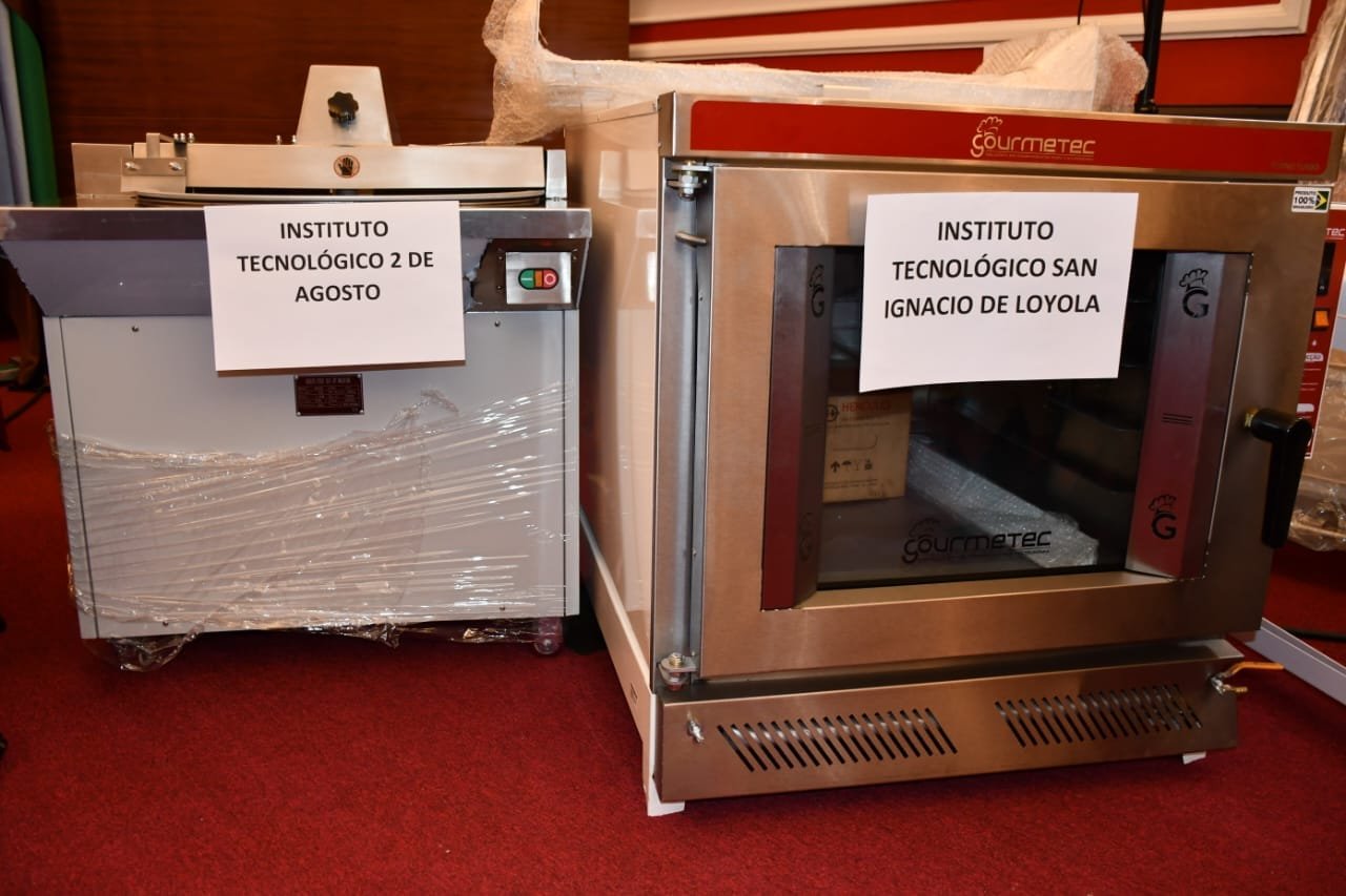 Once son los institutos beneficiados con la entrega de equipamiento que se realizó en el salón rojo de la gobernación, donde también estamparon sus firmas el gobernador de Tarija, Oscar Montes Barzón y autoridades de educación departamental, como la Sub directora de Educación Superior de Formación Profesional, Jennifer Machicado, para formalizar un convenio que permite a los estudiantes realizar sus prácticas profesionales en diversas dependencias de la Gobernación.