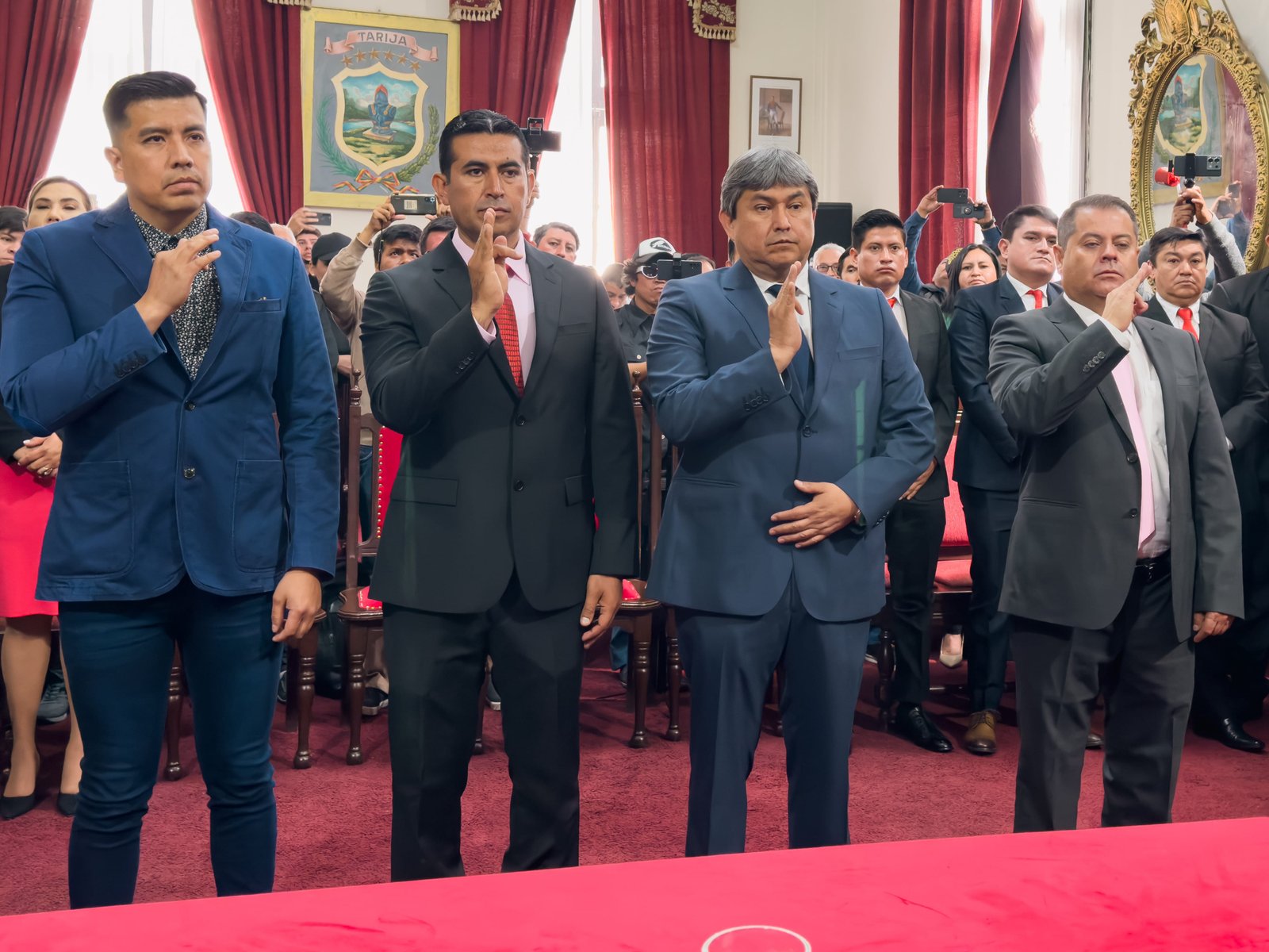 “Con poco hicimos mucho y así vamos a continuar”, con esta frase el alcalde de Tarija, Johnny Torres Terzo, posesionó a su nuevo Gabinete ejecutivo, donde se realizaron algunos cambios, se anunció la fusión de dos secretarías, la de Salud y la de Desarrollo Humano, que ahora estarán bajo un solo secretario. Asimismo, la Secretaría de Finanzas se transformó en la Secretaría de Coordinación y Fortalecimiento Municipal. También hubo un cambio en la Secretaría de infraestructura y servicios públicos y finalmente se posesionó al jefe del Instituto de Estadísticas Municipales.