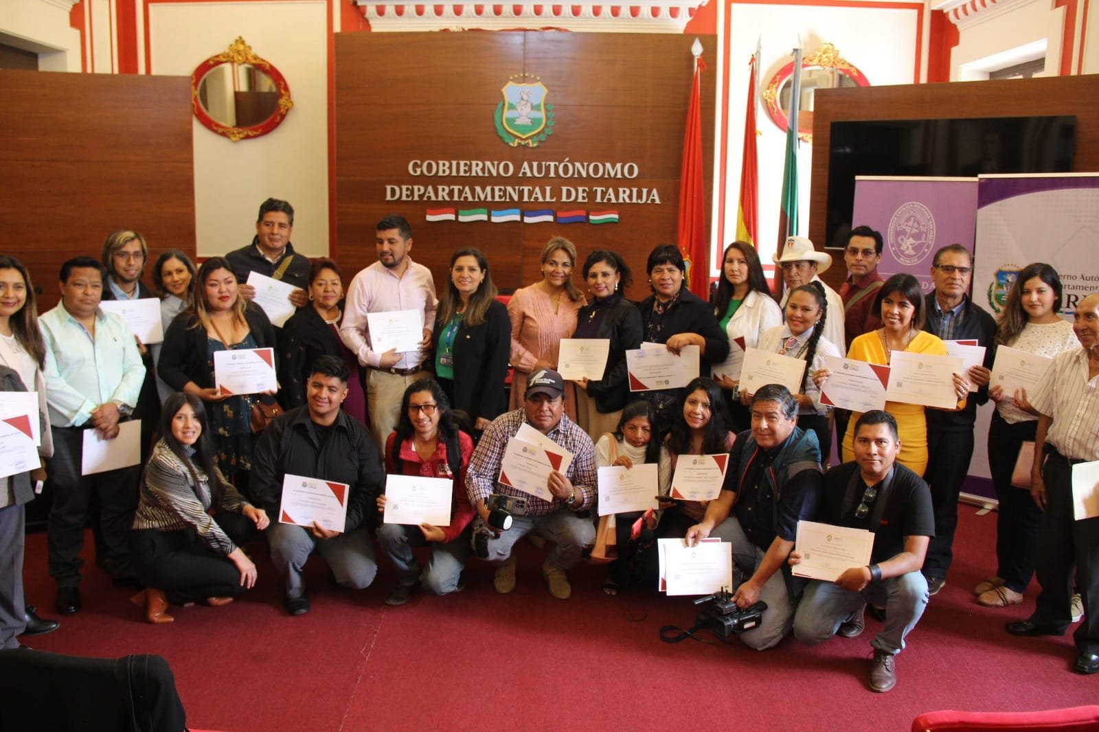 Por Rosy Sánchez/El AndaluzTras cuatro meses de capacitación este viernes, la Gobernación del Departamento de Tarija, a través de la Dirección de Género Generacional y la Universidad Católica Bolivia realizó la entrega de Certificados a d periodistas que participaron en el curso “Voces de Cambio para Construir Equidad”.Este curso tiene el principal objetivo promover el «Tratamiento y Manejo de la Información con Enfoque de Derechos Humanos» y a su vez fortalecer las capacidades de los comunicadores contribuyendo a la construcción de una sociedad más equitativa.Daniela Rojas Farfán, Directora de Genero Generacional, destacó la participación y el compromiso de los trabajadores de la prensa que, a partir de estas experiencias e intercambio de conocimientos, los medios de comunicación jueguen un rol importante en la defensa de los derechos humanos.Así mismo el representante del Sindicato de los Trabajadores de la Prensa, Horacio Rivero Guerrero, a tiempo de agradecer por la iniciativa, dijo que existe el compromiso de trabajar por una sociedad más equitativa. Navegación de entradasAlan Barca señala que la asamblea adeuda tres meses de servicios básicos Vicente Cuellar y Marincovich confirman su candidatura a presidente en las elecciones 2025