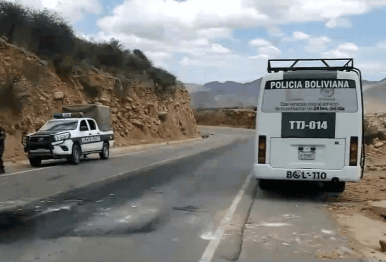 El comandante Departamental de la Policía de Tarija, Ángel Morales, informó que, a tempranas horas de este lunes, se registró punto de bloqueo en la carretera hacia el Chaco a la altura de la comunidad de Junacas. Personal policial se trasladó al lugar donde se evidencio promontorios de tierra en la carretera..