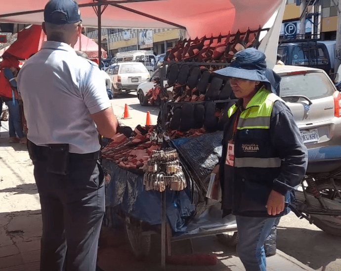 La Intendencia Municipal llevo adelante un operativo de control en inmediaciones del mercado campesino en la ciudad de Tarija a objeto de despejar las vías públicas que son utilizadas por el comercio informal.