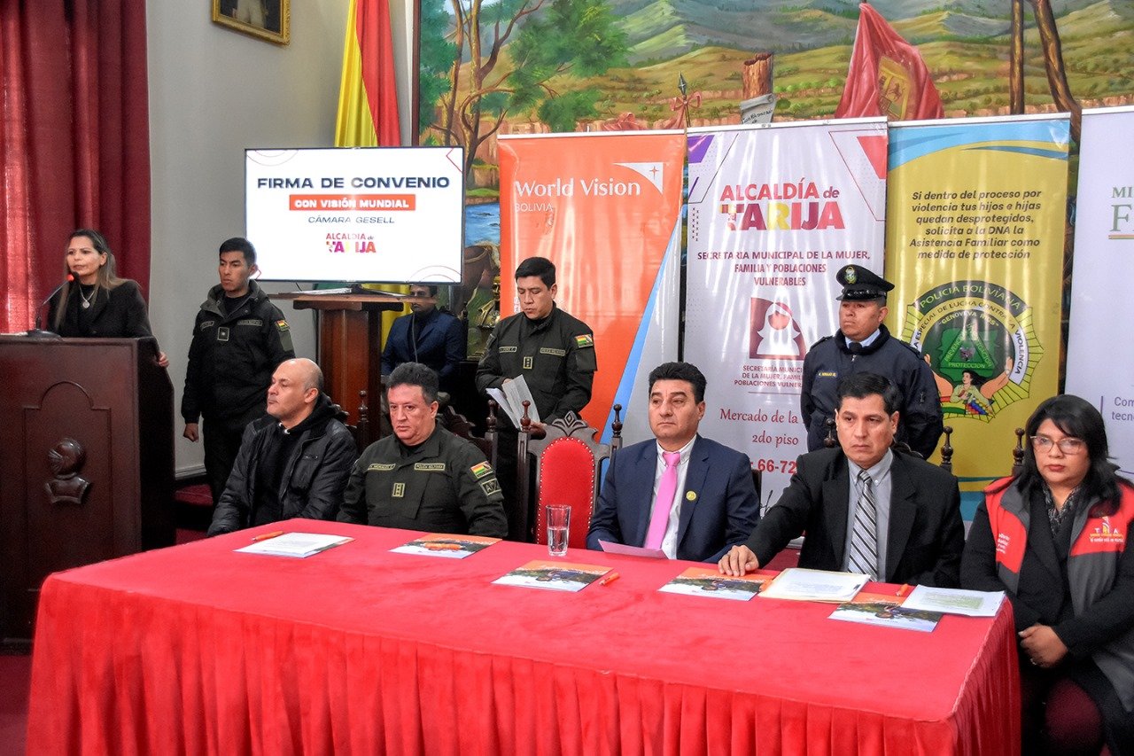 Agencias/El AndaluzCon el apoyo de Visión Mundial, la Alcaldía de Tarija implementará la Cámara Gesell más moderna de Bolivia, ubicada en la Estación Policial Integral (EPI) del barrio Senac y la misma estará al servicio de niñas, niños y adolescentes. En acto realizado en el salón de los espejos del Municipio firmaron el convenio que establecerá mecanismos de cooperación y coordinación en área de interés mutuo, el alcalde Johnny Torres Terzo, la Fiscal Departamental Sandra Gutiérrez y el Comandante Departamental de la Policía Ángel Morales Calzadilla.Cabe mencionar que dicha Cámara será homologada por el Ministerio Público, ya queCumpliría con todos los requisitos establecidos por el Instituto de Investigaciones Forenses.“Es un día especial para la Defensoría y la lucha contra la criminalidad de delitos contra los menores, puesto que la cámara Gesell que se instalará en la EPI de Senac cumplirá con los más altos estándares de calidad y será homologada por el Instituto de Investigaciones Forenses (IDIF) y el Ministerio Público, por ello será una de las más modernas del país y será de uso exclusivo para niñas, niños y adolescentes víctimas de delitos sexuales”, dijo el Alcalde.Asimismo, explicó que, con la cámara Gesell en el barrio Senac será la segunda que se tendrá en Tarija, puesto que la primera se tiene en el mercado la Loma en instalaciones de la Defensoría de la niñez y adolescencia.“Gracias a Visión Mundial y mediante Roberto Orellana a quien agradezco porque está financiando para que se haga la Cámara Gesell en la Epi de Senac y eso es importante para la ciudad de Tarija”, añadió.Mientras tanto la Fiscal Departamental Sandra Gutiérrez, mencionó que, Tarija era la única del país que no cuenta con cámara Gesell para victimas niñas, niños y adolescentes, sin embargo, en las próximas semanas se concretizará el convenio y Tarija podrá contar con una moderna cámara Gesell.“Agradecer a nuestro Alcalde por la apertura que siempre ha dado en estos tipos de temas, dónde se tiene personas vulnerables y ahora vamos a hacer realidad junto a Visión Mundial para poder contar con una herramienta muy importante para una investigación”, apuntó.Por su parte el coordinador departamental de Visión Mundial en Tarija, Roberto Orellana, explicó que, lo que se está logrando es una iniciativa comunal, puesto que cuentan con grupos de comunidades organizadas que proponen y promueven acciones para difundir el derecho de las niñas, niños y adolescentes y poblaciones vulnerables y para que no se tenga la doble victimización.“Esta iniciativa nace y es propuesta a Visión Mundial, quien tiene 12.500 niños registrados en estos programas en el departamento de Tarija, pone el financiamiento para que se realice la Cámara Gesell y así se tendrá una herramienta importante para una investigación efectiva y así no volver a victimizar a las personas”, finalizó. Navegación de entradasSeñalan que sentencia emitida por el TCP violenta la autonomía departamental de Tarija Aguardan pronunciamiento del TCP para activar posible demanda internacional por la contaminación en el Pilcomayo
