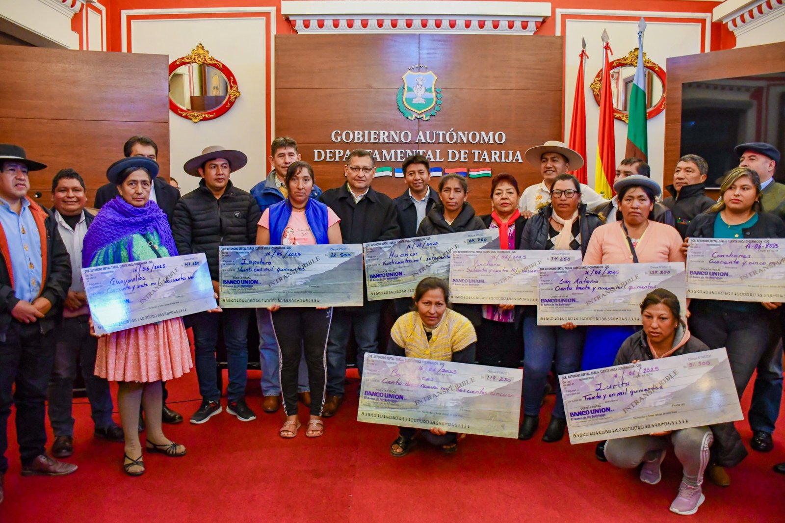 Por Rosy Sánchez/El Andaluz El Gobierno Autónomo Departamental de Tarija, dio inicio a la entrega de recursos del Programa Solidario Comunal (PROSOL) correspondiente a la Gestión 2025, beneficiando a 1.786 familias productoras de 57comunidades de los municipios de Cercado, San Lorenzo, El Puente, Yunchará, Uriondo, Padcaya, Entre Ríos y Bermejo. En un acto realizado en el salón rojo de la Gobernación, el gobernador Oscar Montes Barzón indicó que con el desembolso de 4.018.500 bolivianos se cumple con la primera entrega de cheques del Programa Solidario, recursos que irán destinados netamente a programas de riego y compra de equipamiento agrícola. “Lo que hemos acordado en la última reunión que hemos tenido con la federación de campesinos, es que vamos a dar prioridad a aquellas comunidades que definan proyectos comunitarios, ya no más aquellos que llega el camión y cada uno sale con su bolsita para su casa, priorizado que los recursos lleguen a la comunidad en su conjunto”, explicó la autoridad. El gobernador indicó a su vez que se incorporaron a 150 comunidades castigadas en gestiones anteriores, sin embargo, recomendó a la dirigencia campesina a realizar una depuración de las listas de beneficiarios. “Tiene que estar uno por familia, si hay gente que no hace actividad agrícola o vive en la ciudad no tiene por qué estar en las listas”, mencionó Oscar Montes. En su intervención el secretario ejecutivo de la Federación de Campesinos de Tarija, Herbert Quispe, dada la situación económica que atraviesa el departamento, solicitó a los beneficiarios hacer el uso efectivo y responsable de los recursos del Prosol enfocado a proyectos comunales. “Podemos utilizar estos recursos como contraparte de algunos proyectos que pueden ser ejecutados de forma conjunta con otras instituciones como las Sub-Gobernaciones, Los Gobiernos Municipales y el mismo Gobierno Nacional. Creo importante optimizar el uso de estos recursos”, enfatizó el dirigente de la Federación de Campesinos. De momento el monto económico por cada beneficiario del Prosol se mantiene en 2.500 bolivianos, Son más de 300 las comunidades beneficiarias a nivel departamental. Desde la Federación de Campesinos esperan que hasta fin de año se pueda concluir con la entrega de este beneficio en favor del sector agrícola. Navegación de entradasJuntas Vecinales de Cercado protestan en puertas del municipio exigiendo complimiento al POA 2023 y 2024 Alcaldía concientiza a padres de familia y estudiantes sobre el cuidado del Medio Ambiente