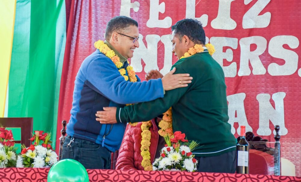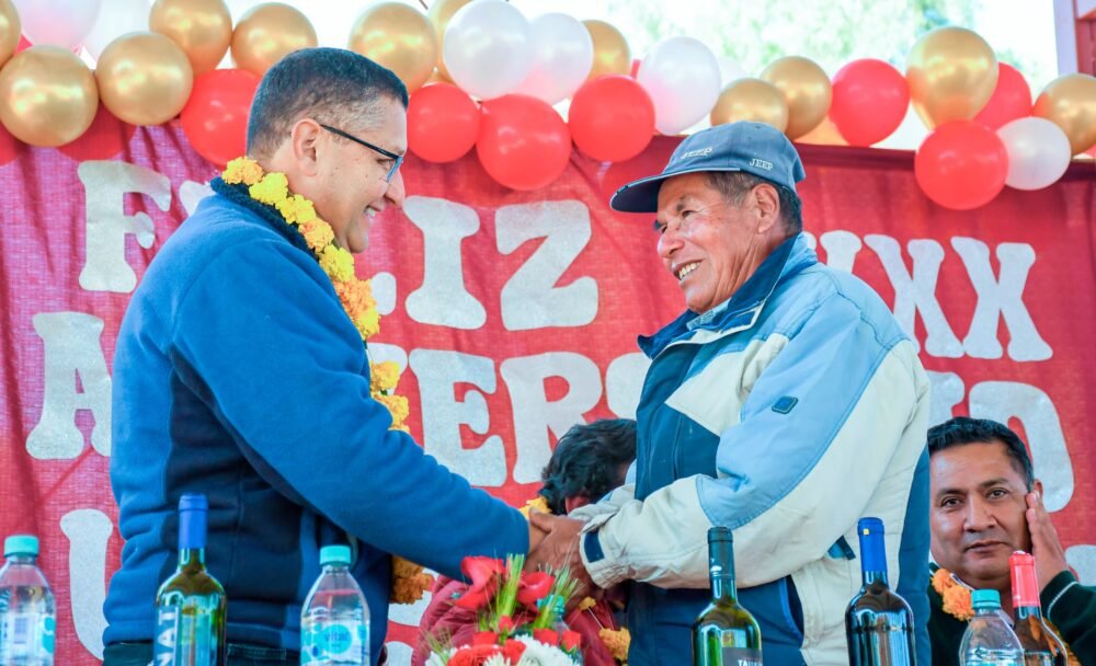 En un emotivo acto conmemorativo por los 80 años de vida institucional de la Unidad Educativa San Juan, el Gobernador del Departamento de Tarija, Oscar Montes Barzón, realizó la entrega oficial de un tinglado en la comunidad de San Isidro, municipio de Uriondo.