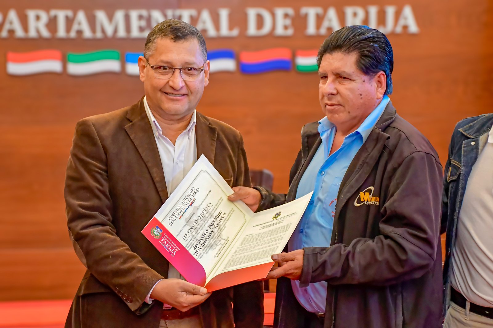 Agencias/El AndaluzEl Gobernador del Departamento de Tarija, Lic. Oscar Montes Barzón, realizó la entrega de ocho Personalidades Jurídicas a distintas Asociaciones de Transporte que cumplieron con todos los requisitos y normativas establecidas por la ley vigente.Las asociaciones que recibieron su personería jurídica son:Asociación de Taxis Mixtos “30 de Noviembre” San AndrésAsociación de Transporte “24 de Junio Patrón San Juan”Asociación de Transporte Libre “Sella – San Antonio”Asociación de Transporte “Churo Chapaco” A.T.C.CAsociación de Transporte de Pasajeros y Carga “Trans del Sur Mecoya”Asociación de Transporte “Expreso Rápido El Trigal”Asociación de Transporte Libre “Virgen de Guadalupe”Asociación de Transporte Libre “Señor de Santiago”Durante el acto, los dirigentes de las asociaciones beneficiadas expresaron su agradecimiento y realizaron un reconocimiento público al gobernador Oscar Montes, valorando el apoyo institucional brindado en favor del fortalecimiento del sector transporte en el departamento.Con esta entrega, la Gobernación de Tarija reafirma su compromiso con la legalidad, la organización social y el desarrollo formal de las actividades productivas y de servicio en la región. Navegación de entradasMontes promulga modificación a la Ley 504 y denuncia desinformación con fines políticos Caballo descontrolado atropella a tres personas en Bermejo, hay un niño con una fractura grave de cráneo y lucha por su vida