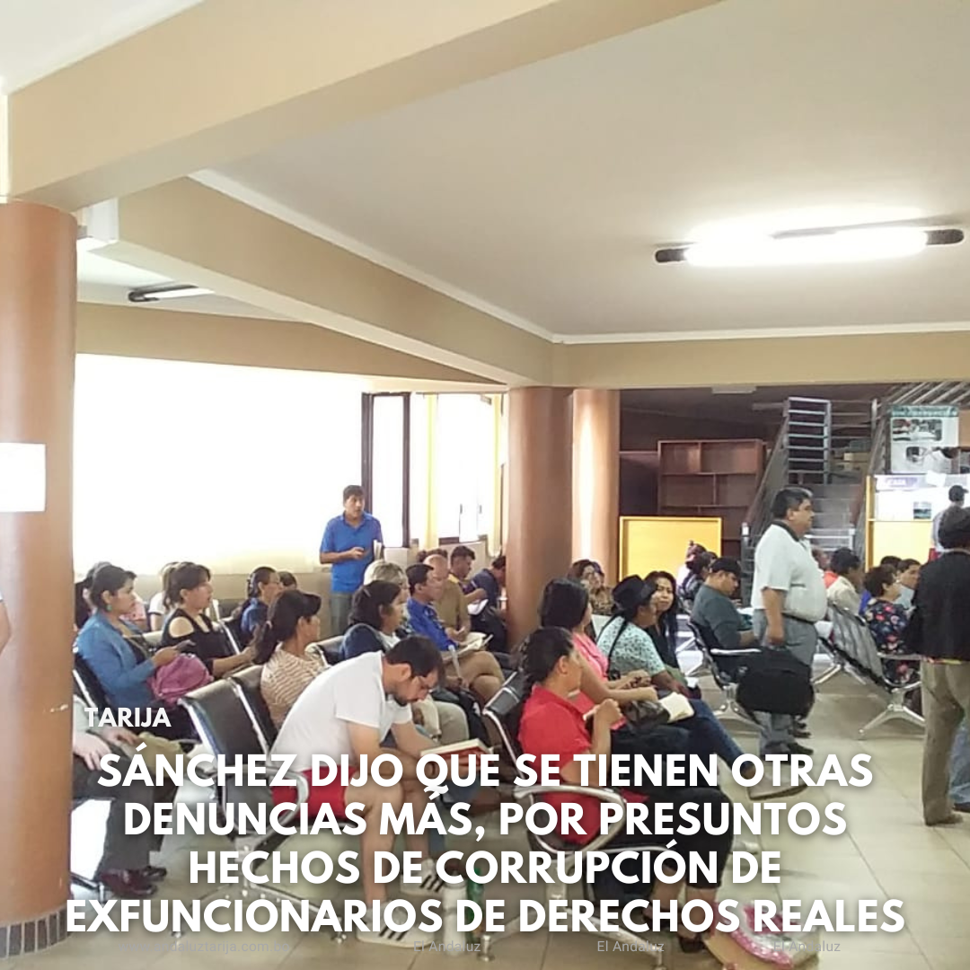 Osmar Arroyo/El AndaluzLa diputada Esther Sánchez indicó a El Andaluz que el pasado 22 de julio, presentó una denuncia ante el Viceministerio de Transparencia y Lucha Contra la Corrupción, en contra de funcionarios y exfuncionarios de Derechos Reales y de la Dirección de Ordenamiento Territorial (DOT) por presuntos hechos de corrupción.Mencionó que se entregaron pruebas de respaldo de la denuncia, fotografías y documentos. La legisladora nacional dijo que se están presentando otros casos, denuncias por afectados en otras zonas de la ciudad, documentación que también se remitirá ante el Viceministerio de Transparencia.Mencionó que hasta la próxima semana, ya se tendrá una respuesta de la instancia nacional, que toda la documentación es recabada en la ciudad de La Paz.Explicó que la denuncia es en contra de exfuncionarios, exautoridades, personas externas, cobradores, tramitadores, loteadores, notarías, abogados.También se incluye al Instituto Nacional de Reforma Agraria (INRA), en la denuncia presentada y reitero que se van sumando nuevos casos, de la zona de la terminal de buses.Por otra parte, señaló que, el Consejo de la Magistratura lleva adelante otro proceso de investigación, por denuncias en contra de exfuncionarios de Derechos Reales. Navegación de entradasAlcalde de Tarija inicia la entrega de material escolar de apoyo El Chaco conmemora 149 años de su fundación en medio de reclamos por obras inconclusas