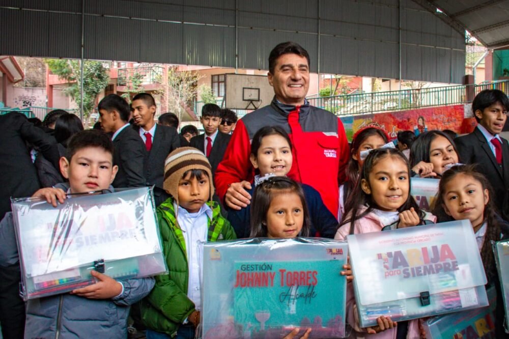 La Alcaldía de Tarija, bajo la gestión del alcalde Johnny Torres Terzo, continúa realizando la entrega de material escolar de apoyo a los estudiantes de la provincia Cercado, en la jornada del jueves 4 de septiembre la máxima autoridad municipal llegó a tres unidades educativas UE Bolivia, Aniceto Arce y Juana Azurduy de padilla donde más de mil estudiantes de primaria y secundaria recibieron el maletín con los útiles escolares de apoyo.