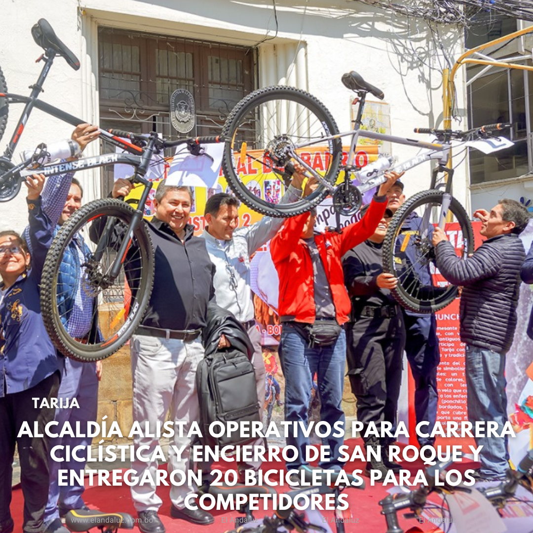 En acto realizado en el frontis del Gobierno Autónomo Municipal de Tarija (GAMT) se realizó el acto de entrega de 20 bicicletas para premiar a los competidores de la carrera ciclística campesina San Roque – Chaguaya – San Roque. Además, el Municipio indicó de los diferentes operativos que realizará durante la competencia y la fiesta Grande de San Roque.