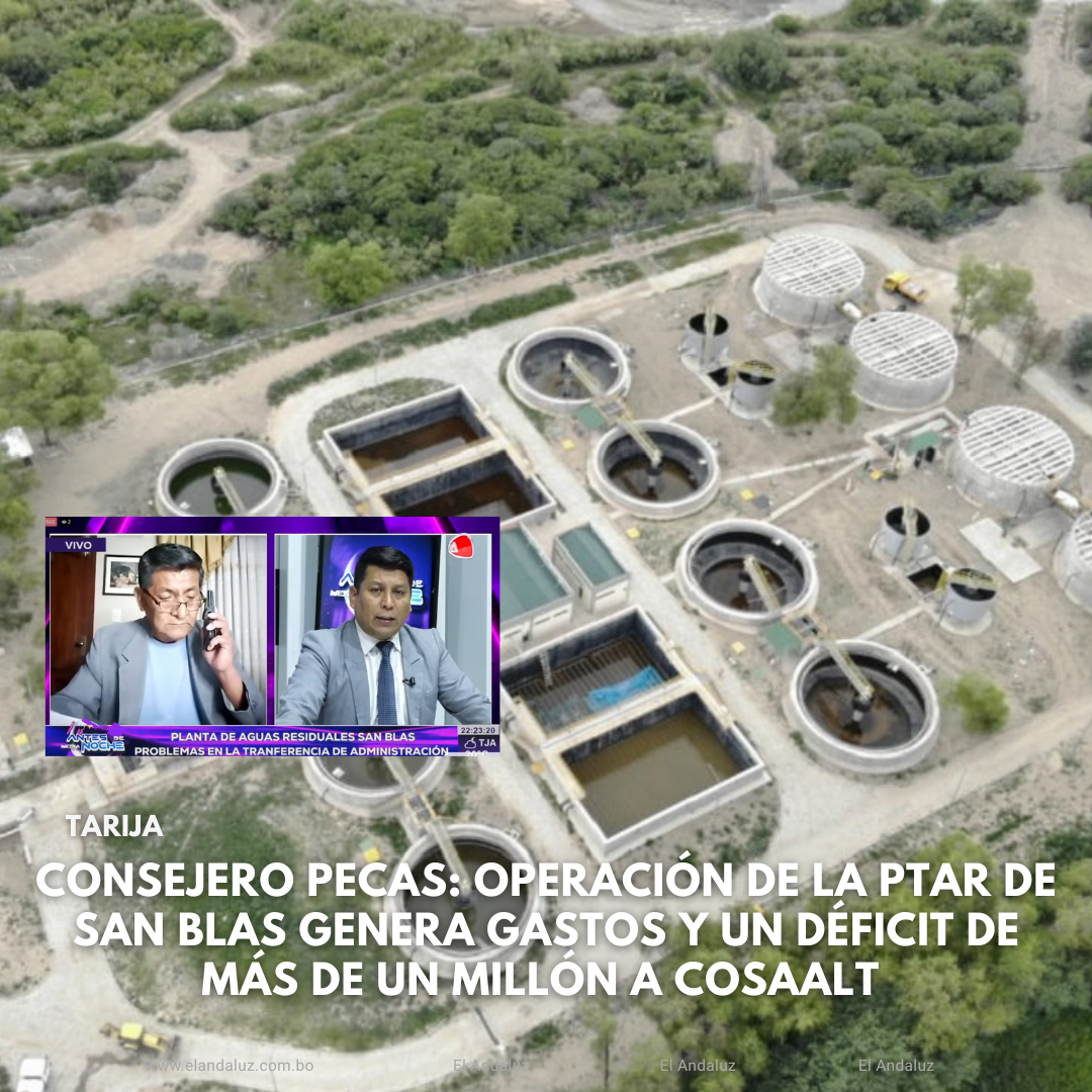 En el programa Antes de Media Noche de Televisión Andalucía, cadena hermana del periódico El Andaluz, el consejero de vigilancia de la Cooperativa de Servicio de Agua y Alcantarillado de Tarija (Cosaalt), José Pecas señaló que el tema sobre la transferencia de la Planta de Tratamiento de Aguas Residuales de San Blas, es preocupante.