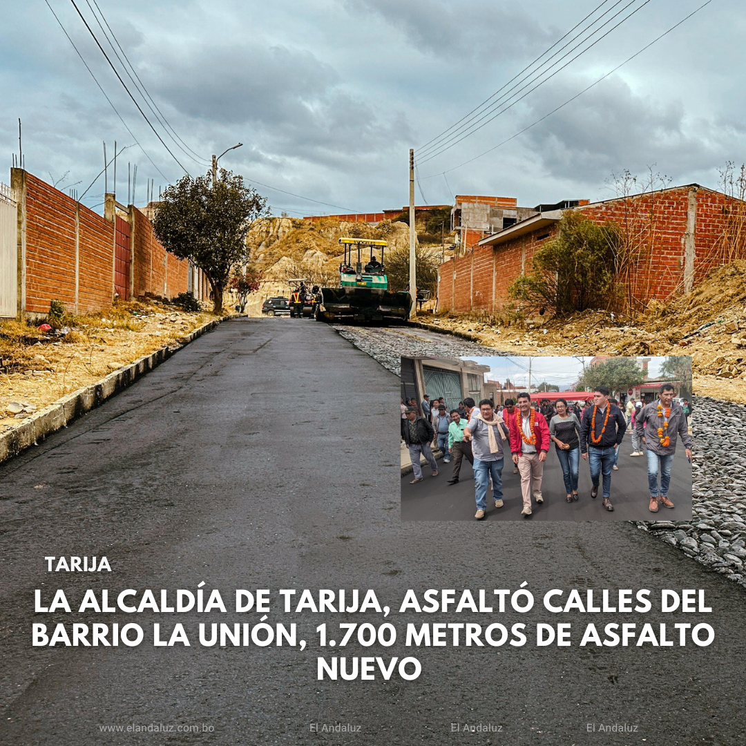Agencias/El AndaluzEn el marco del plan de asfaltado, la Alcaldía de Tarija, asfaltó calles del barrio La Unión, 1.700 metros de asfalto nuevo que beneficiará directamente a 300 familias.“El asfalto determina calidad de vida, porque en el tiempo de invierno se evita la polución de tierra, en tiempo de lluvia no hay barro la ciudad y el barrio se ven más bonitos, pero al mismo tiempo recomendamos a los vecinos que pongan sus cordones y hagan sus aceras porque no sirve de nada tener la calle asfaltada y la acera de tierra” dijo Torres Terzo.De igual manera el alcalde indicó que pese a la crisis, se pudo adquirir el asfalto y se puso en marcha el mencionado plan de asfaltado, el cual llegará a 30 barrios de la ciudad de Tarija. Se asfaltarán alrededor de 86 nuevas cuadras.“En lo que va de la gestión logramos asfaltar más de quinientas cuadras es decir alrededor de 52 kilómetros, mejorando la calidad de vida de la gente, estamos muy felices porque estamos cumpliendo con nuestros compromisos”, declaró Torres Terzo.Por su parte el presidente del barrio La Unión, Beltrán Guarachi, destacó la gestión del alcalde Torres, ya que se ejecutaron varias obras como el sistema de agua potable y alcantarillado ahora el plan de asfaltado.“Estamos muy felices porque en esta gestión nos ayudaron con la ejecución de varias obras, que son vitales para el barrio, sin duda que faltan otras cosas, pero como familias del barrio La Unión estamos contentos porque cada compromiso del alcalde se está cumpliendo”, acotó Guarachi. Navegación de entradasAlcaldía realiza construcción del sistema de alcantarillado sanitario en el barrio 27 de mayo Alcaldía garantiza la dotación de medicamentos y suministros médicos para los 30 centros de salud