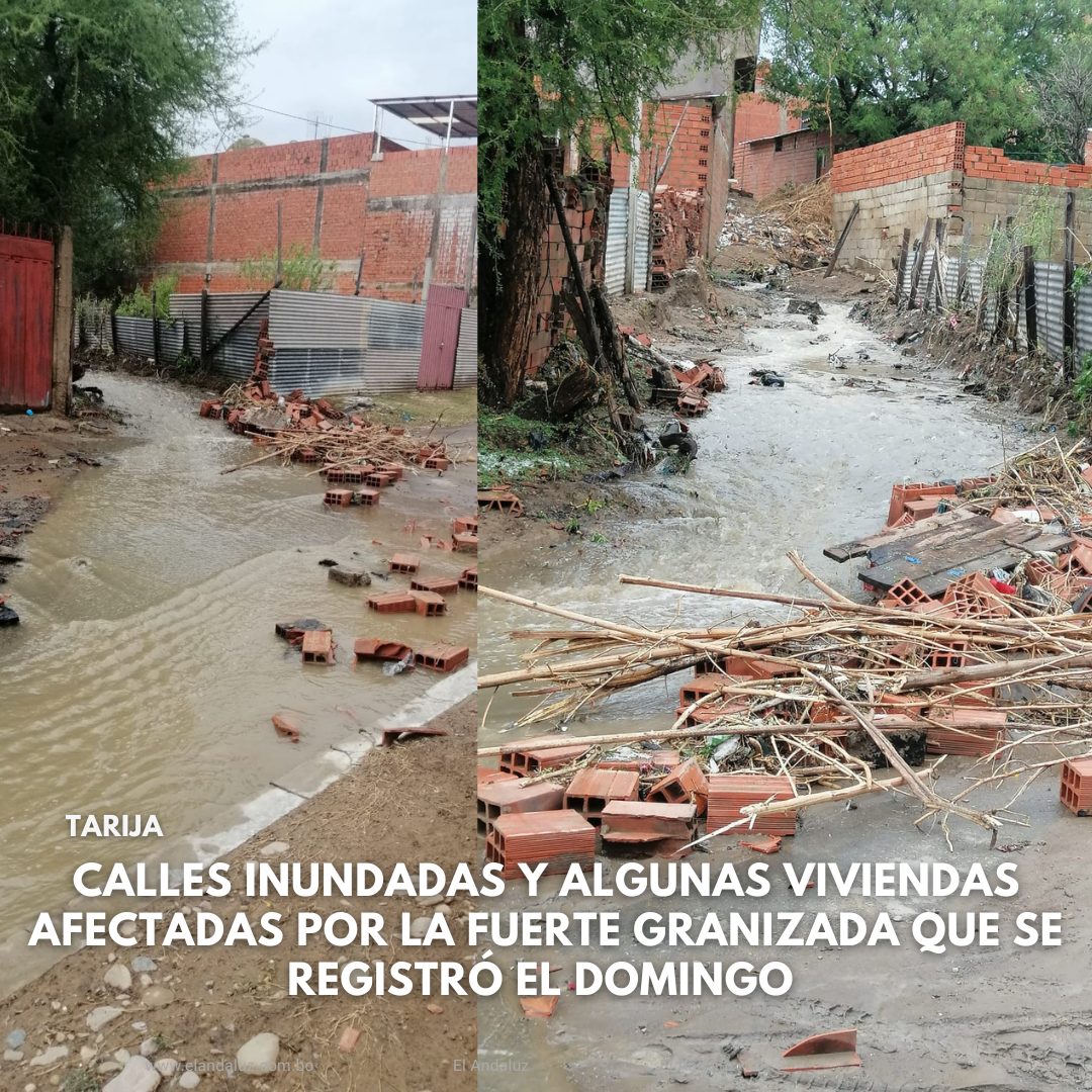 Osmar Arroyo/El AndaluzEn la pasada jornada, se registró en Tarija, una intensa lluvia, acompañada de granizo, que afectó a varias zonas de la ciudad, generando el anegamiento de agua.El dirigente de la Federación Departamental de Juntas Vecinales de Tarija (Fedjuve), Edwin Arana informó a El Andaluz, que se reportó la afectación en diferentes barrios de la ciudad.Mencionó que se reportó la afectación, en el barrio 6 de Octubre, el barrio 3 de Mayo, La Florida, Las Pascuas, entre otras zonas de la ciudad.Señaló que la granizada afecto varias zonas, barrios en donde se tienen algunas calles que tienen pendientes muy pronunciadas, se reportó que afectó a algunas viviendas, por el granizo acumulado, que arrastró sedimento.La granizada se registró en horas de la tarde de este domingo, no fue por mucho tiempo, pero fue con intensidad.El dirigente indicó que también se reportaron que, en la zona de San Jacinto Norte, se tuvo afectación.Calles inundadas y algunas viviendas afectadas, dijo que fueron los efectos, producto de la granizada. Navegación de entradasSEDAG impulsa nuevas parcelas de producción de carozos y pepita en el departamento Trabajan proyecto de Ley para buscar frenar los delitos cibernéticos