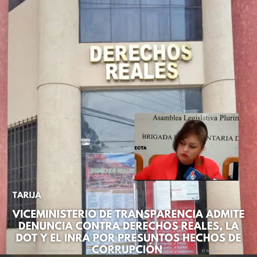 La vicepresidenta de la Brigada Parlamentaria de Tarija, la diputada por Comunidad Ciudadana (CC), Esther Sánchez informó a El Andaluz que la denuncia presentada ante el Viceministerio de Transparencia y Lucha Contra la Corrupción, por presuntas irregularidades en Derechos Reales y la Dirección Municipal de Ordenamiento Territorial (DOT), ya tiene una respuesta de la instancia nacional.