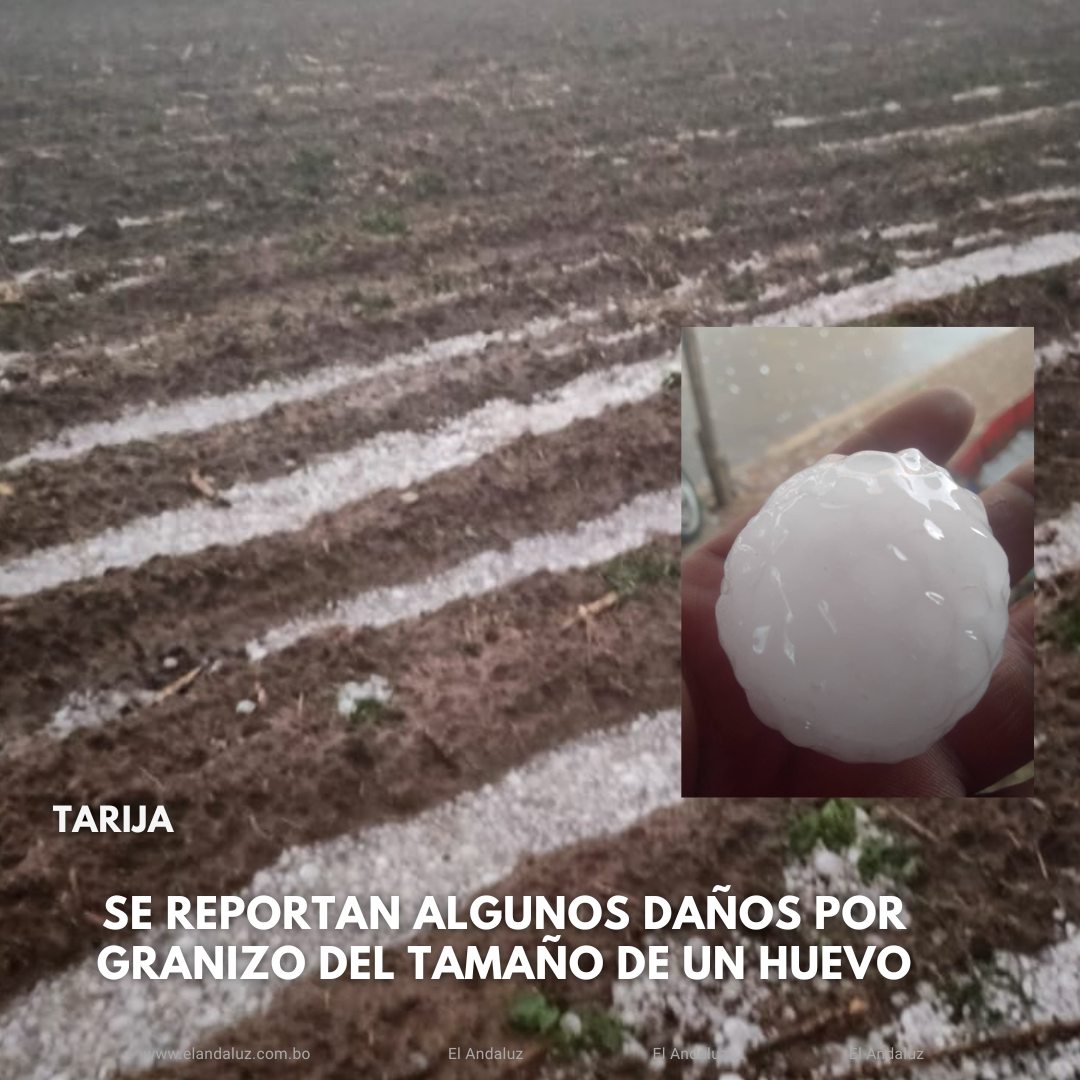 El vocal de la directiva de la Federación Departamental de Juntas Vecinales de Tarija (Fedjuve), Edwin Arana informó a El Andaluz que la granizada que se registró, ayer miércoles, generó algunos problemas en diferentes zonas de la ciudad de Tarija.El dirigente señalo que fue una granizada fuerte y sorpresiva. Indicó que se habría registrado la rotura de parabrisas de algunos vehículos.Al momento no se tienen datos de la cuantificación de los daños que se habrían registrado y dijo que, en las próximas horas, seguramente el municipio hará conocer un informe sobre la afectación.Arana dijo que se reciben los reportes de los diferentes barrios, que, hasta la pasada jornada, el reporte indicaba que se registraron inundaciones, el taponamiento de las boca tormentas, pero no se tenían daños de mayor gravedadMencionó que, en la temporada de lluvia, se registran problemas en las calles que tienen una pendiente más pronunciada.Esperan que, en el reporte oficial sobre los daños de la granizada, registrada ayer, no se tengan daños de consideración.En redes sociales se mostró granizo de gran tamaño. En algunas zonas de la ciudad reportaron que el granizo era del tamaño de un huevo Navegación de entradasGobernación responde a críticas de asambleístas departamentales Este jueves se realiza una inspección al hospital Materno Infantil y al Oncológico