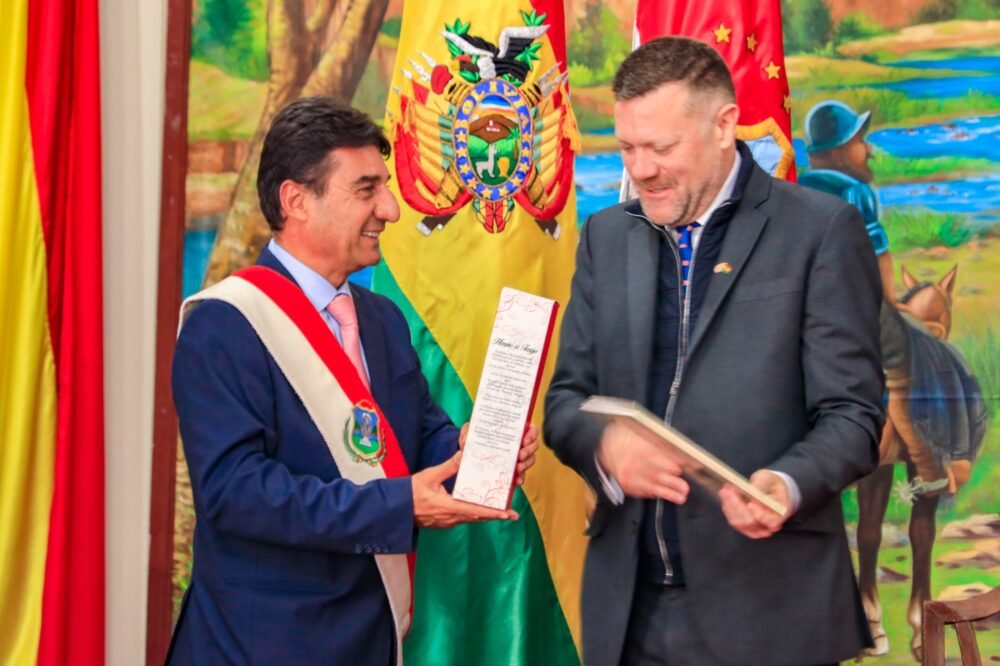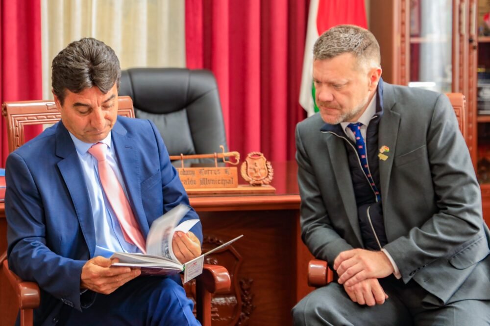 En la búsqueda de fortalecer y promocionar a Tarija como principal destino Turístico, como apoyo en el tema ambiental y el incentivo a la exportación de diferentes productos, el alcalde de Tarija, Johnny Torres Terzo, recibió y se reunió con el embajador de Gran Bretaña, Richard Porter, quien destacó el potencial turístico de la capital chapaca.