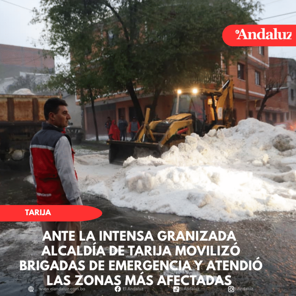 Agencias/El Andaluz Tras la intensa granizada que cayó en Tarija la tarde del jueves, el alcalde, Johnny Torres Terzo, junto