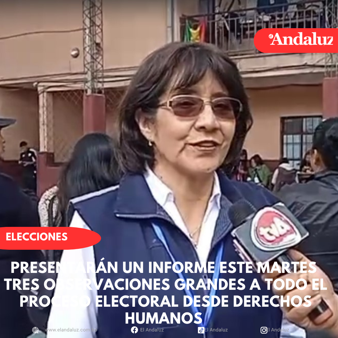 Osmar Arroyo/El AndaluzLa presidenta de la Asamblea Permanente de Derechos Humanos en Tarija (DD.HH.), Yolanda Herrera informó a El Andaluz que son 60 activistas en Derechos Humanos en todo Bolivia, acreditados que realizan el monitoreo y la veeduría de todo el proceso electoralAdelantó que este martes se emitirá un reporte global, de la primera vuelta en agosto y la segunda vuelta en octubre, un informe desde la Asamblea de Derechos Humanos a nivel nacional, con todas las departamentales y regionales.Durante el periodo de la campaña electoral, indicó que lamentablemente no ha primado la cordura, el desafío que se ha planteado en estas elecciones.«Tenemos tres observaciones grandes, que la vamos a expresar en nuestro informe, uno es que, en algunos momentos ha estado muy sesgado por el tema de la discriminación y el racismo, independientemente de cualquiera de los candidatos, pero hubo esta tónica, por nivel de profesión, por nivel de edad, por varios de estos, se ha presentado un nivel de discriminación y racismo», expresó.La segunda observación, dijo que se continúa con una debilidad institucional, cuando se hizo el debate, se ha permitido que haya un nivel de agresión entre los candidatos y las autoridades no han puesto un alto, aún vemos que hay una debilidad institucional, también en el órgano electoral.Una tercera observación, señaló que no está dando a la suficiente cabida a la participación de la sociedad civil, que se convocó en Santa Cruz a los candidatos, para debatir el tema del medio ambiente, las leyes incendiarias y no acudieron, porque lo convocó la sociedad civil.Considera que esos tres aspectos deben ser revisados, remarcando que la democracia no está solamente en la votación.«La democracia no solo está en la votación, está también, en qué la ciudadanía tiene que ser escuchada y los candidatos tiene que hacer presencia, cuando estos son convocados. Navegación de entradasÓrgano Electoral destaca jornada tranquila y transparencia en el proceso electoral Tarija deja huella en la historia de Bolivia: Rodrigo Paz es el nuevo presidente
