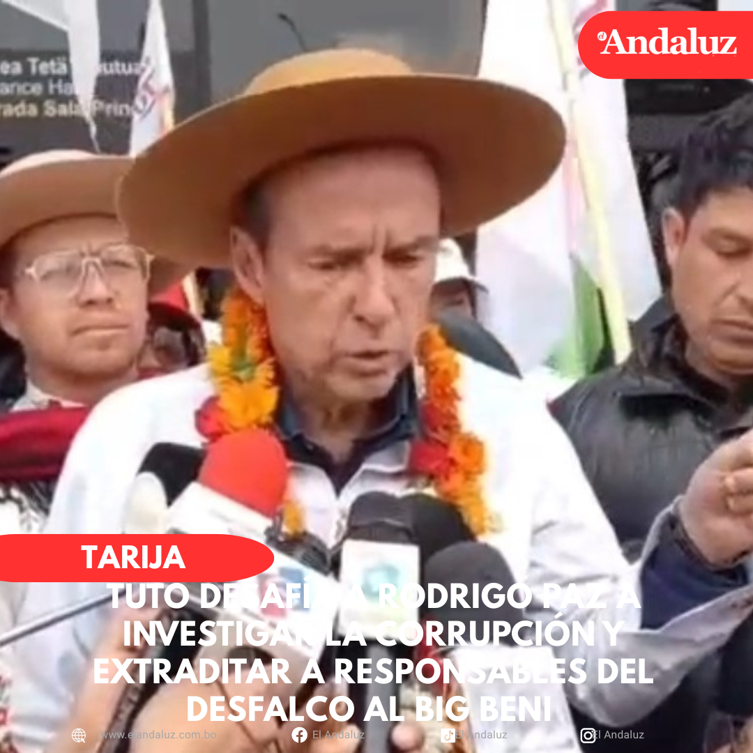Tuto desafía a Rodrigo Paz a investigar la corrupción y extraditar a responsables del desfalco al Big Beni