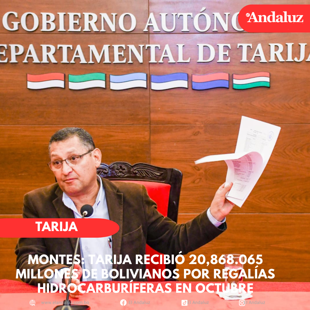 Agencias/El AndaluzEl gobernador del departamento de Tarija, Lic. Oscar Montes Barzón, dio a conocer los ingresos por concepto de regalías…