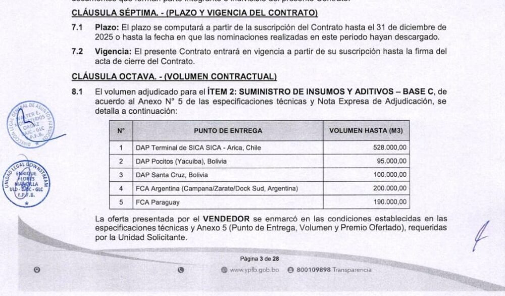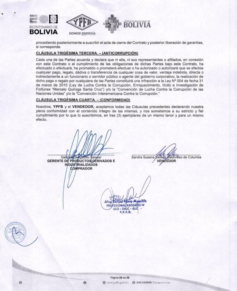 Afirmó que el contrato suscrito por el gobierno de Luis Arce, continúa vigente, que Rodrigo Paz no podía haber anulado este contrato, ni Yacimientos Petrolíferos Fiscales Bolivianos (YPFB).