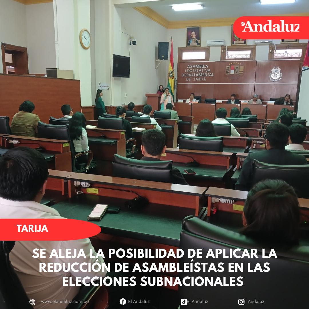 Osmar Arroyo/El AndaluzEl presidente de la Asamblea Legislativa Departamental de Tarija (ALDT), Damián Castillo indicó a El Andaluz que enviaron notas al presidente de la Cámara de Senadores y al presidente de Diputados, para ver la posibilidad de incluir un artículo transitorio en la Ley Electoral, para la reducción del número de asambleístas para Tarija.Mencionó que lamentablemente, no se logró incluir en el proyecto de Ley, el artículo, ahora se busca otra alternativa, para que en las próximas elecciones subnacionales se pueda reducir el número de asambleístas.Castillo dijo que se está viendo de tratar el tema, en la Ley de Régimen Electoral Departamental, proyecto que se encuentra en tratamiento en comisiones de la Asamblea Departamental.El ente legislativo departamental, sancionó la ley de Reforma Parcial del Estatuto Autonómico de Tarija, para la reducción de asambleístas, en meses pasados y fue presentado al Tribunal Constitucional Plurinacional (TCP), para el control de constitucionalidad, pero el tema tomara su tiempo, en la instancia nacional.El proyecto de Ley fue enviado en consulta por la comisión de Constitución al Tribunal Electoral Departamental de Tarija (TED).El presidente de la Asamblea considera que en esta semana se tratará la Ley en el pleno del ente legislativo.Explicó que, la Ley se encuentre en consulta con el órgano electoral no impide que se lo trate en el pleno.Por su parte, el Asambleísta departamental, Rubén Reyes indicó que se aguarda la respuesta del órgano electoral, en los siguientes días.Mencionó, que tras escuchar declaraciones públicas del presidente del TED, sobre el tema, se buscará la manera, si es necesario, de solicitar el tratamiento de la Ley en el pleno, por dispensación de trámite.Esperan que en esta semana se agende el tratamiento de la Ley, recordando que anteriormente se ha estado usando, supletoriamente una norma nacional.Ley del 45%El Asambleísta Rubén Reyes indicó que la Ley del 45% o redistribución de regalías fue enviado al ejecutivo departamental y que la autoridad tiene 10 días para pronunciarse, para promulgar la Ley o para observarla.Esperarán a qué el gobernador se pronuncie, en caso, que no promulgue la Ley, dijo que la Asamblea deberá tomar una decisión, si se declara fundadas o infundadas las observaciones.Si se declaran fundadas las observaciones, la Ley tendrá que ser modificada, pero si la Asamblea determina que lo observado es infundado, el presidente del ente legislativo promulgarla la Ley, en caso de que se presente este escenario.Mencionó que está situación se presentó en varias ocasiones, que el gobernador no promulga una Ley, haciendo referencia a la Ley 139 de mayo del 2016, la Ley del presupuesto que le asignaba el 45% al Chaco, el gobernador observó la Ley y la Asamblea considero que no era a lugar, las observaciones y fue el presidente, en ese entonces, Williams Guerrero, quien promulgó la Ley.Señalo que no hay que adelantarse y hay que esperar que se pronuncie el gobernador del departamento. Navegación de entradasPrimera sesión de Brigada: Nuevos legisladores elegirán este martes a su directiva Alcaldía premió a 10 emprendedores del programa “Incubadora de empresas 2025”