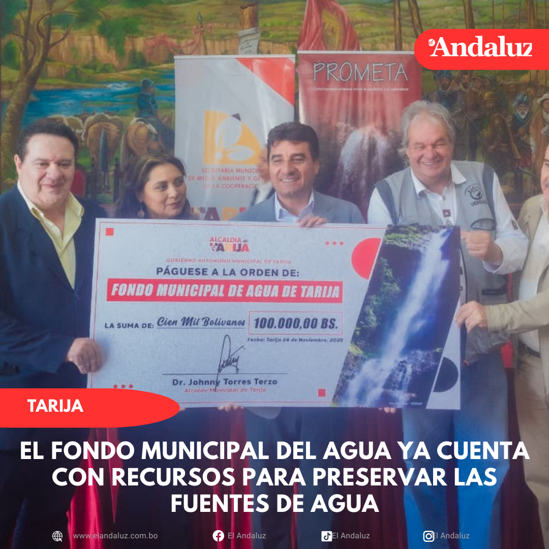 Agencias/El Andaluz Tras el desembolso de los primeros 100 mil bolivianos el Fondo Municipal del Agua ya cuenta con los…