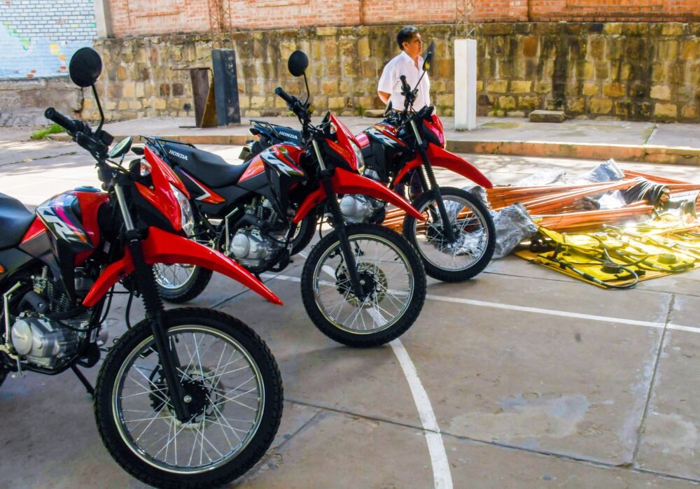 La dotación incluye motocicletas, material de escritorio, limpieza, llantas, batefuegos, mochilas y otros insumos necesarios para fortalecer el trabajo operativo y preventivo de la unidad policial.
