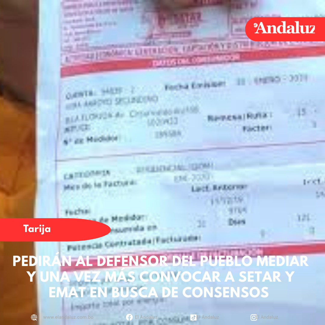 Osmar Arroyo/El AndaluzEste lunes 12 de enero se cumple el plazo establecido en la resolución del Juzgado Agroambiental, para que se realicen mesas de trabajo entre Servicios Eléctricos de Tarija (Setar) y la Empresa Municipal de Aseo Urbano de Tarija (EMAT) sobre un nuevo convenio para el cobro por el recojo de la basura.En pasados días, el gerente de EMAT, Rodrigo Castillo indicó que el gerente de Setar insiste en que el cobro de la tasa de aseo urbano se lo haga en un recibo adosado a la factura de energía eléctrica y no se lograron consensos, señalando que el tema se dejará en manos de la instancia judicialEl presidente de la Federación Departamental de Juntas Vecinales de Tarija (Fedjuve), Celestino Barro indicó a El Andaluz que en estas semanas, Setar firmó un convenio con Bermejo, para el cobro de la tasa de aseo urbano y lo hará en la misma factura de energía eléctrica, pero con Cercado insisten en que se lo haga en un recibo adosado o adjunto a la factura de Setar, lo que consideran que no garantiza que todos los usuarios cumplan con el pago de este servicio.Celestino Barro señaló que desde las Juntas Vecinales se pedirá que se convoque una vez más a las mesas de trabajo, un último intento en busca de un acuerdo para la firma de un nuevo convenio y dar solución al tema de la basura.Esperan que las autoridades de Setar y EMAT acepten y asistan a una última convocatoria, que se lo hará a través de la Defensoría del Pueblo, institución que apoyo desde un inicio en el tema.«Nosotros vamos a hablar al Defensor del Pueblo, que ellos puedan mediar en esto y podernos convocar y poder intentar una vez más», agregó.Piden que el cobro por el recojo de la basura se lo realice, como antes, en la misma factura de energía eléctrica y no en un recibo adosado.Remarcó que se intentará una vez más buscar los consensos, caso contrario, este tema podría quedar pendiente hasta que se elijan a las nuevas autoridades departamentales y municipales.Por otra parte, informó que EMAT presentará un informe sobre todo el trabajo realizado en mesas técnicas, lo presentarán ante la instancia judicial, que no se lograron consensos. Navegación de entradasSenadora señala que se deben reactivar los proyectos que quedaron pendientes para Tarija Viceministro García: «Existe un sistema de corrupción incrustado dentro de instituciones públicas»