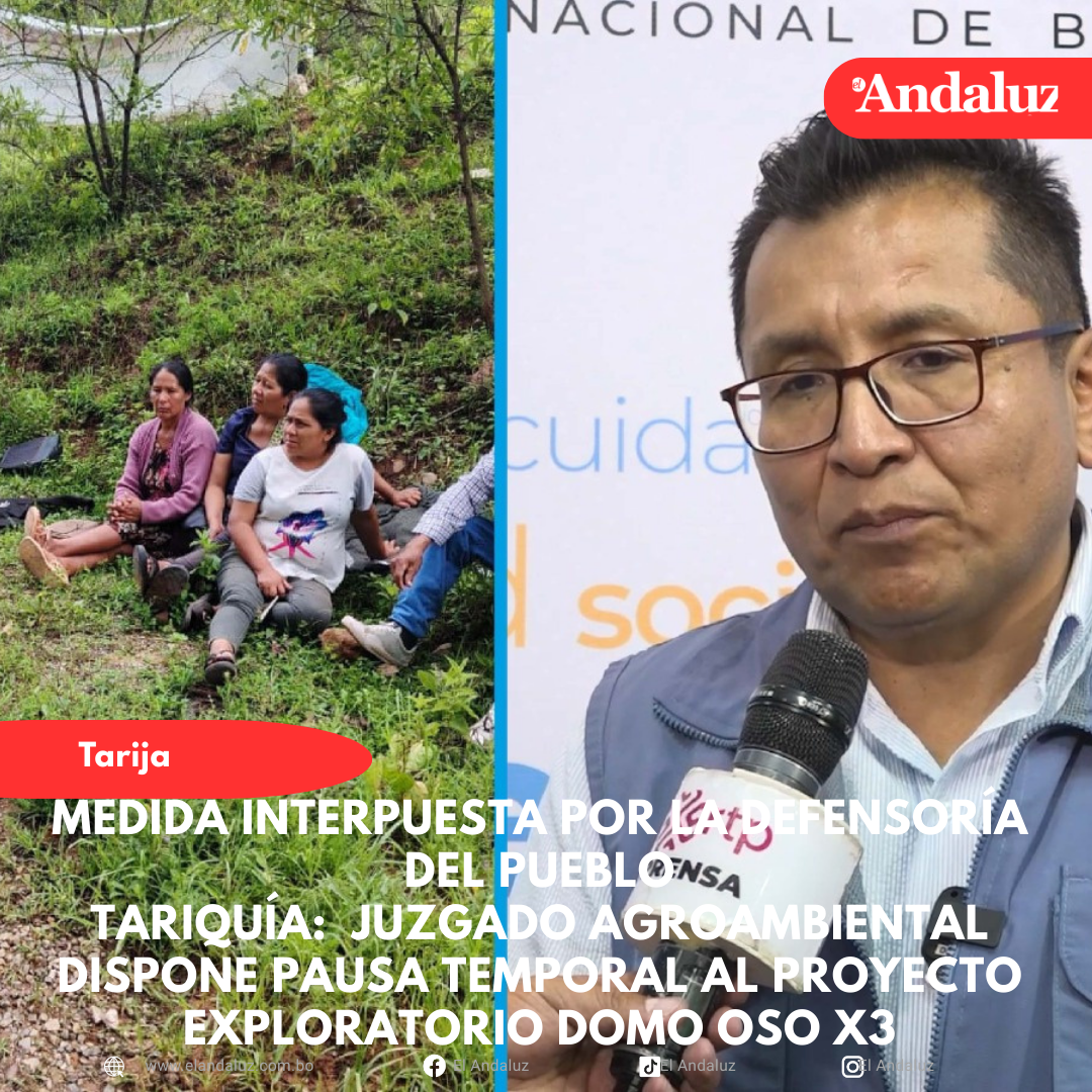 Agencias/El AndaluzA través de sus redes sociales, el Defensor del Pueblo, Pedro Callisaya, informó, la tarde de este viernes, que el Juzgado Agroambiental de Entre Ríos admitió la solicitud de medidas cautelares ambientales presentada por la Defensoría del Pueblo, disponiendo la suspensión temporal de los actos de ejecución material del Proyecto Perforación Exploratoria Pozo Domo Oso X-3, Bloque Exploratorio San Telmo Norte, ubicado en la provincia O’Connor del departamento de Tarija, área vinculada a la Reserva Nacional de Flora y Fauna Tariquía.De acuerdo con lo comunicado por la autoridad defensorial, entre las principales determinaciones adoptadas por la instancia judicial se encuentra la realización de una audiencia de inspección técnica prevista para el 9 de febrero de 2026, así como la convocatoria a una audiencia pública el 13 de febrero de 2026, espacios que permitirán evaluar de manera integral los aspectos ambientales, técnicos y procedimentales del proyecto antes de asumir una decisión final.Asimismo, el Defensor del Pueblo informó que el Juzgado Agroambiental dispuso la incorporación de PETROBRAS como sujeto procesal necesario, además de la notificación a las autoridades demandadas, partes y terceros interesados, garantizando el respeto al debido proceso y la participación de todos los actores involucrados.De manera complementaria, se señaló que la autoridad judicial solicitó a la Defensoría del Pueblo proporcionar información sobre las defensoras y los defensores de derechos humanos en asuntos ambientales, con el objetivo de que esta situación sea considerada para una eventual determinación de medidas cautelares específicas en su favor.Finalmente, el Defensor del Pueblo expresó “reafirmamos nuestro compromiso con la protección preventiva de los derechos humanos, el medio ambiente y el debido proceso, en el marco del Estado Constitucional de Derecho”, y que, “defender la vida, nunca será un delito”. Navegación de entradasNever Antelo comparte una chocolatada con los niños de Yacuiba Órgano Electoral realiza el sorteo de ubicación de franjas para la papeleta de sufragio