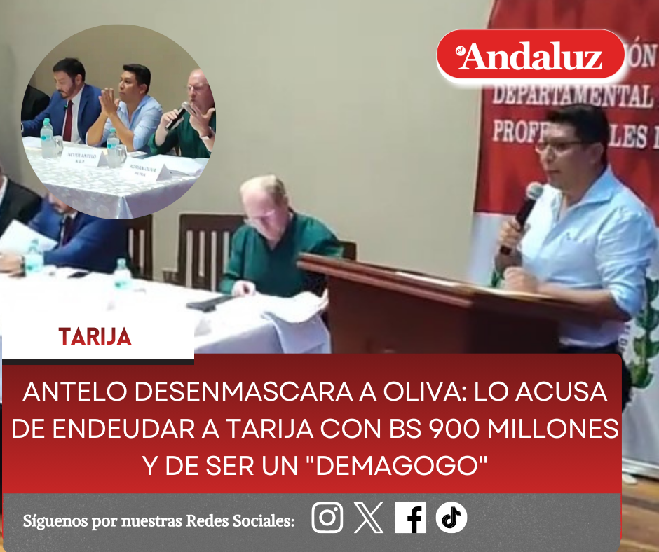 Redacción Central/El Andaluz Never Antelo desenmascaró al exgobernador Adrián Oliva en pleno debate, acusándolo de haber endeudado a Tarija con
