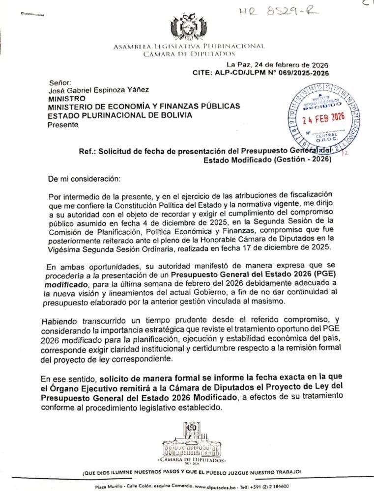 Recordó que, en este momento, estamos con un presupuesto heredado del MAS y que el gobierno debe presentar el reformulado.
