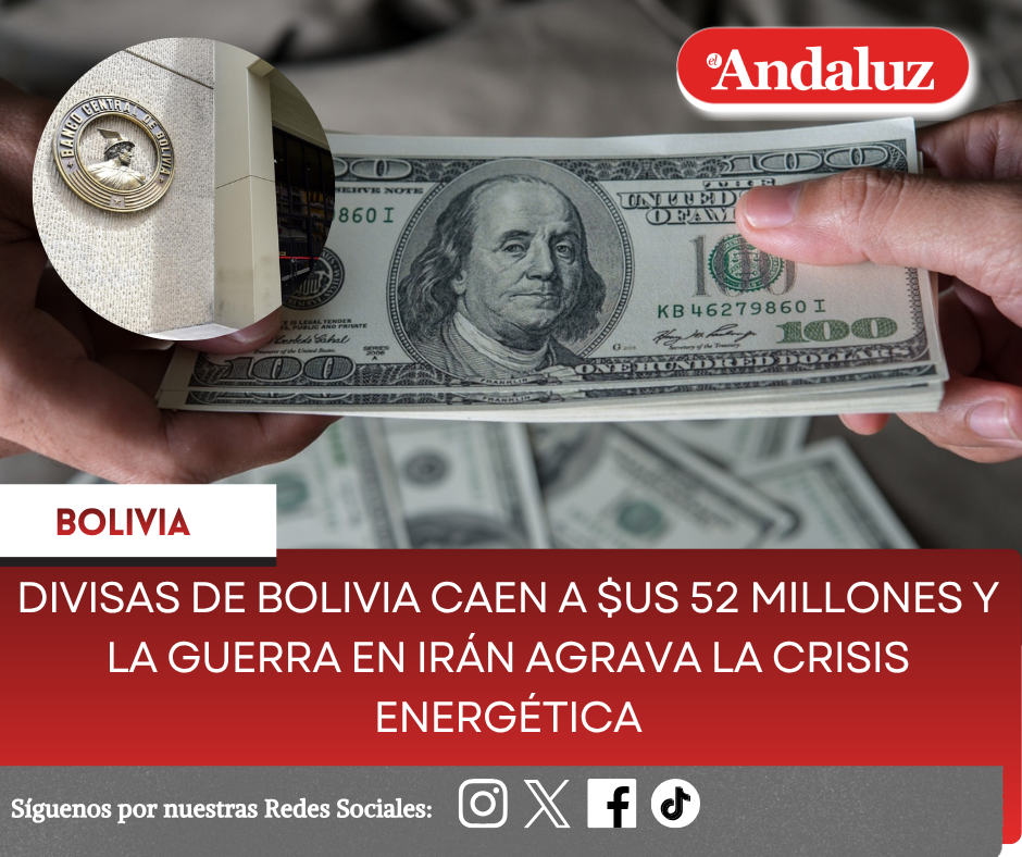 Redacción Central/El AndaluzLas divisas de Bolivia caen a $us 52 millones y la guerra en Irán agrava la crisis energética, luego de que las reservas líquidas en efectivo del Banco Central de Bolivia (BCB) se desplomaran un 85% en marzo de 2026 para cumplir con el pago de la deuda externa, dejando al país en una situación de extrema vulnerabilidad ante el alza internacional del petróleo y la millonaria importación de combustibles subvencionados.El desplome de las reservas y el peso de la deuda externaLa actualización estadística del Banco Central de Bolivia (BCB), al 20 de marzo de 2026, revela una contracción crítica en los activos más líquidos del país. Las divisas disponibles pasaron de 355 millones de dólares a solo 52 millones en cuestión de días. Aunque las Reservas Internacionales Netas (RIN) totales se ubican en 3.484 millones de dólares, su composición está peligrosamente asfixiada: el 96% de este monto corresponde a oro físico y no a dólares utilizables para transacciones inmediatas.De acuerdo con analistas económicos, este drástico descenso de liquidez responde al cumplimiento del pago de cupones de bonos soberanos por un valor de 388 millones de dólares. Irónicamente, este desembolso permitió que calificadoras de riesgo como Moody’s y Standard & Poor’s mejoraran la nota crediticia de Bolivia, ignorando que el cumplimiento de obligaciones se logró mediante un agresivo endeudamiento externo que evaporó los recursos líquidos.Un claro ejemplo de este ciclo de endeudamiento es el crédito de 550 millones de dólares otorgado por la CAF (Banco de Desarrollo de América Latina y el Caribe) en diciembre de 2025, cuyos primeros desembolsos se utilizaron para pagar deudas anteriores con el mismo prestamista.La venta de las reservas de oro como salvavidas de alto riesgoAnte la falta de efectivo, el Banco Central de Bolivia ha planteado a la Asamblea Legislativa modificar la Ley 1503 para reducir el piso obligatorio de 22 toneladas de oro en reserva y poder convertirlas en divisas.Esta propuesta ha generado un fuerte debate técnico. Analistas financieros advierten que la venta de las reservas de oro monetario equivale a “vender las joyas de la abuela”, lo que deteriora gravemente la credibilidad institucional y las expectativas económicas del mercado. El metal precioso cumple un rol de respaldo soberano y monetario que, de desaparecer, comprometería la confianza en el tipo de cambio.El impacto del petróleo global y la escalada bélica en Medio OrienteA la debilidad estructural interna se suma un shock geopolítico externo que presiona la balanza de pagos. La guerra desatada el pasado 28 de febrero entre Israel, Estados Unidos e Irán ha empujado la cotización del petróleo crudo Brent por encima de los 100 dólares, alcanzando picos de 114 dólares por barril.Bolivia es un importador neto de energía: adquiere del mercado externo cerca del 90% del diésel y el 50% de la gasolina que consume el parque automotor. El desfase es crítico, ya que el Presupuesto General del Estado calcula los precios internos sobre un barril referencial de 64,45 dólares (Decreto Supremo 5516), ampliando la brecha de subsidios. Las autoridades de Yacimientos Petrolíferos Fiscales Bolivianos (YPFB) han reconocido que el rebrote inflacionario del crudo obliga al Estado a redoblar el gasto en la subvención.Proyecciones económicas e incertidumbre cambiariaEstudios del Instituto de Estudios Avanzados en Desarrollo (INESAD) proyectan que la paridad de importación de combustibles podría incrementarse entre un 13% y un 60%, dependiendo de la duración de las hostilidades en el estrecho de Ormuz. Además, el costo del subsidio mensual de YPFB podría dispararse más de un 100% en los escenarios más severos. Esto se traducirá en:Mayor presión fiscal: una demanda descontrolada de dólares para costear combustibles caros, lo que neutralizará los esfuerzos estatales por reducir el déficit fiscal.Riesgo de inflación: al trasladarse el encarecimiento de los fletes de transporte a los precios de la canasta básica familiar alimentaria.Brecha cambiaria e inestabilidad social: aunque el dólar paralelo bordea los 10 bolivianos, la población ya sufre desabastecimiento de carburantes y fallas de calidad que han provocado paros del transporte sindicalizado. Navegación de entradasCaso Marset: fiscal defiende hallazgo de cajas vacías mientras la FELCN investiga a Dircabi por devolver bienes Mamen Saavedra y Johnny Torres se consagran como los más votados de Bolivia