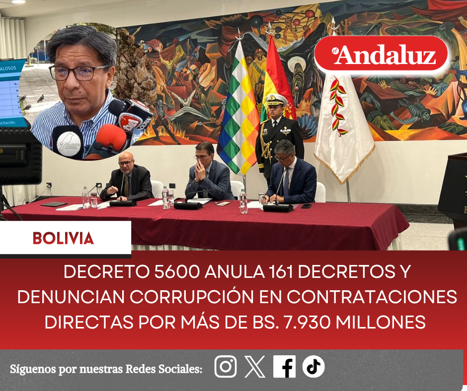 «El tamaño de todo esto fueron 161 Decretos, (…) por más de 96 millones de dólares y por más de 7.930 millones de bolivianos. De estos 161 Decretos, 105 de ellos, son sin monto, es decir, instrumentos que están vigentes en todo momento y que podían ser utilizados en todo momento, para poder dar adjudicaciones sin licitación, a quien se le ocurra a la autoridad de turno y así lo hicieron, por eso llegaron a estos 161 Secretos», apuntó.