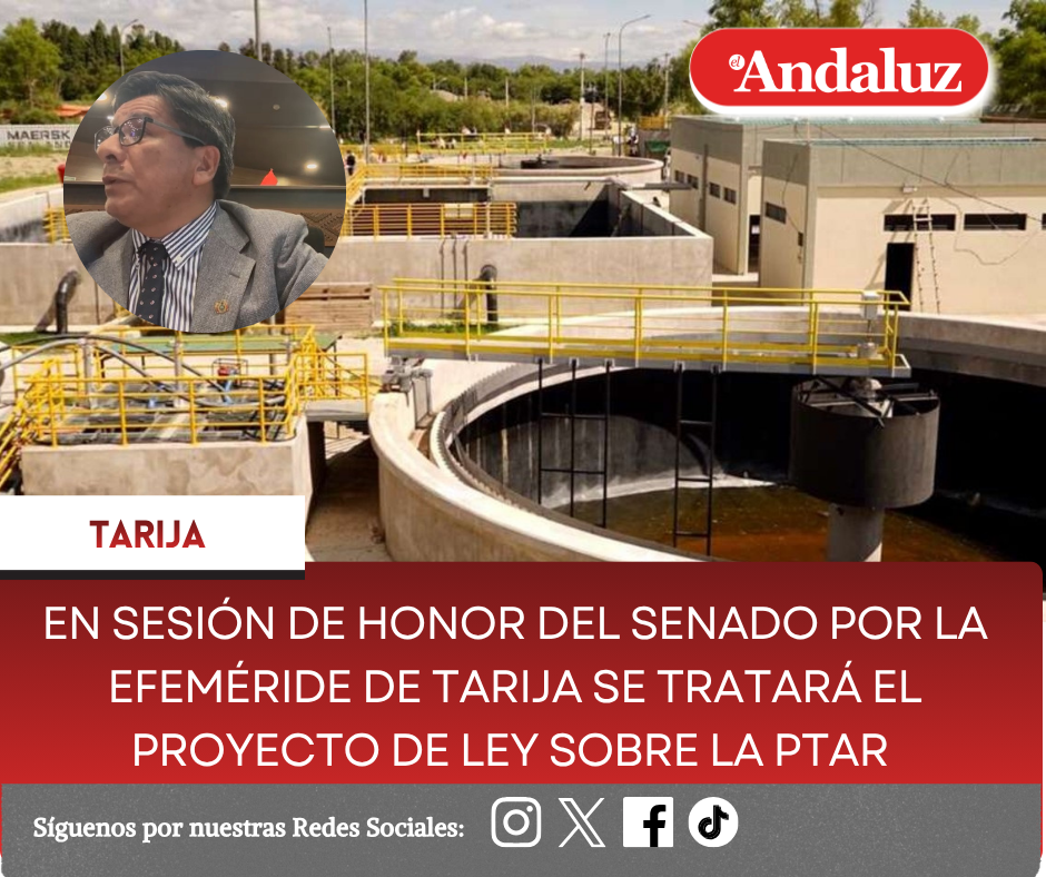 Osmar Arroyo/El AndaluzLa madrugada de este viernes en sesión del pleno de la Cámara de Diputados se aprobó la Ley sobre el contrato de crédito para el financiamiento del proyecto de la Planta de Tratamiento de Aguas Residuales para Tarija (PTAR).El martes pasado se aprobó la Ley en el Comité de Finanzas, la noche del miércoles se la aprobó en sesión de la Comisión de Planificación y este viernes logró aprobarse en el pleno de Diputados, para ahora ser remitido a la Cámara de Senadores para su tratamiento.La senadora Marcela Guerrero indicó a El Andaluz que este martes, en la ciudad de Tarija, la Cámara de Senadores realizará una sesión de Honor por la efeméride departamental, será a las 8:30 de la mañana en la Casa de la Cultura.Mencionó que en esta sesión de Honor se pretende, como uno de los puntos principales tratar en grande y detalle el proyecto de Ley para aprobar el crédito para la Planta de Tratamiento de Aguas Residuales.Guerrero señaló que, la idea es que se apruebe la Ley y con la presencia del presidente Rodrigo Paz en Tarija, inmediatamente pueda ser promulgada.El diputado tarijeño José Luis Porcel, fue uno de los legisladores que gestionó que se agilice el tratamiento del proyecto de Ley.«Nuestro departamento, desde el año 2015 hasta el año pasado, solamente ha tenido un año de crecimiento (económico), los diez años restantes de crecimiento, por la sobre explotación del gas. Las dos últimas obras de impacto que tiene Tarija son, la del hospital de hace 40 años y la presa de San Jacinto, que también data de la década del 80», expresó Porcel en su intervención en la sesión en la Cámara de Diputados.Mencionó que en cinco años del gobierno anterior, la distribución de los recursos en el país, de los casi 1.500 millones que llegaron, lo que corresponde para los departamentos.«Pando está 0 por ciento, Beni 0 por ciento, Tarija 2,8 por ciento, que es mentiroso, lo único que llegó a Tarija fue el proyecto para la remodelación del aeropuerto que es 41.9 millones de dólares, cuya Ley se publicó el 16 de marzo del 2023 y hasta ahora el avance de obra no llega al 1 por ciento. Ese es el trató que hemos recibido de parte del gobierno del MAS», apuntó.Remarcó que se tiene que trabajar para evitar esos desequilibrios, mencionando que los departamentos que no son parte del eje central, parecería que no son parte del país.El legislador nacional argumentó en la sesión, que el proyecto de la PTAR es importante, porque la Planta de Tratamiento que está en el barrio San Luis, estaba diseñado para una población de alrededor de 110.000 habitantes y en la actualidad Tarija tiene alrededor de 250.000 habitantes.«Hay una contaminación ambiental, el río Guadalquivir se está contaminando, los niños se están enfermando, pese a que está situación está pasando, el pueblo está esperanzado que esto se haga realidad», agregó.José Luis Porcel resaltó que este tratamiento se debe dar a todos los departamentos del país, que se deben atender las principales necesidades.«No hay desarrollo si no hay inversión y para que haya inversión, sobre todo en nuestro país es necesario el endeudamiento, pero pensemos, que el endeudamiento tiene que ser bien invertido, tiene que ser fiscalizado por nosotros mismos, no pensemos que eso es, ya corrupción», aseveró.Aclaró, que no se señala que esto sea un regalo para Tarija, que es por justicia, a pocos días de la efeméride de Tarija por los 209 años de la batalla de La Tablada.ProyectoLa Planta de Tratamiento de Aguas Residuales que se emplazará en la zona Cabeza de Toro, será para atender a los 11 distritos de Tarija.El proyecto «Construcción de Colectores, Emisario y Planta de Tratamiento de Aguas Residuales Cabeza de Toro, será financiado a través de un crédito de la CAF de hasta 65 millones de dólares.De acuerdo a la información brindada por el diputado Porcel, el desembolso de los recursos se realizará en un plazo de seis meses, el primer desembolso y de 72 meses, para solicitar el último desembolso. Navegación de entradasAlcalde Johnny Torres no firmará alianzas con ningún partido político Piden priorizar el resarcimiento por daños a vehículos de la Policía Boliviana por la gasolina desestabilizada