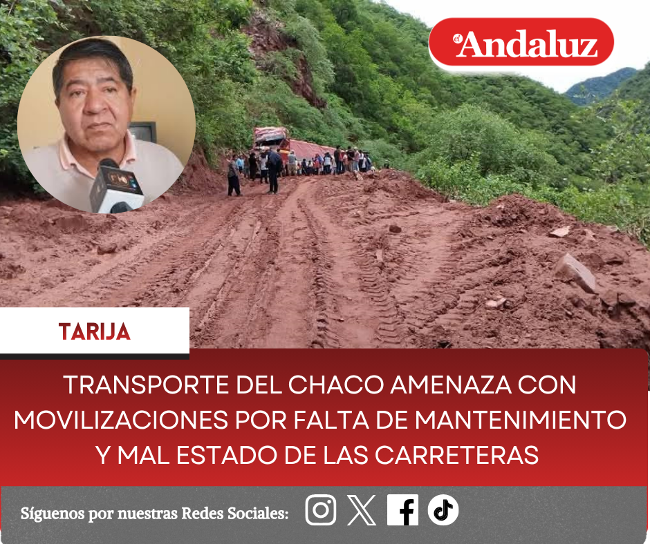 Osmar Arroyo/El AndaluzEl ejecutivo de la Federación Departamental del Autotransporte 15 de Abril de Tarija, Gabriel Pérez señaló a El Andaluz que no se cumple con los trabajos de mantenimiento en las carreteras, que solo se ve una pala mecánica trabajando.El dirigente recordó que autoridades de la Administradora Boliviana de Carreteras (ABC), comprometieron que desde el 13 de abril se contrataría empresas para el trabajo de limpieza en los diferentes tramos, por los derrumbes que se registran.Mencionó que el transporte federado en el Chaco amenaza con iniciar movilizaciones si no se realizan los trabajos de limpieza y mantenimiento.Pérez dijo que el pasado miércoles se tenía programada una reunión con autoridades de la ABC, pero la estatal caminera no asistió.El transporte de Yacuiba y de Villa Montes se reunirán en las próximas horas para determinar si se asume un paro movilizado para exigir a la ABC que cumpla con el compromiso.El gobierno accede a un crédito de Fonplata para realizar los trabajos de limpieza y mantenimiento.El dirigente del transporte indicó que se conoce que ya estaba el desembolso de los recursos garantizados, pero faltaba cumplir con el trámite administrativo, para que se haga efectivo.Mientras tanto, el estado de los diferentes tramos carreteros no es el mejor, en algunas zonas se tiene mayores dificultades para la circulación vehicular.Esperan que las autoridades cumplan con los trabajos de mantenimiento y se despejen las vías en el departamento.Combustible desestabilizadoPor otra parte, Gabriel Pérez informó que el resarcimiento por los daños a los vehículos por la gasolina desestabilizada, no se estaría cumpliendo.La dirigencia nacional del Autotransporte aguarda una nueva convocatoria del gobierno para una reunión y tratar el tema.Según Pérez, al momento, no hay el resarcimiento de los daños al 100 por ciento, como se acordó, que se estaría haciendo un resarcimiento de un 30 por ciento aproximadamente. Navegación de entradasPresidente Rodrigo Paz señala que trabajará con todas las autoridades electas del país