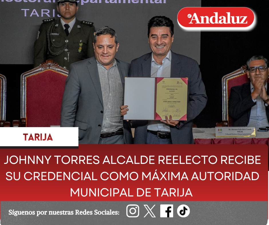 Agencias/El AndaluzComo estaba programado el Órgano Electoral procedió este martes 28 a la entrega de credenciales a las autoridades electas de Tarija, Johnny Torres Terzo, alcalde reelecto recibió su respectiva credencial por el periodo 2026-2031.“Un agradecimiento enorme a toda la población de Tarija, por esa votación masiva y ese respaldo a partir eso decirles que lo más difícil ya lo hicimos y por eso creo que recibimos ese respaldo entonces en cuanto el presente y al futuro el trabajo será más sencillo porque los problemas más grandes ya los resolvimos, como el caso de la basura, el cerrar ese botadero a cielo abierto parecía imposible pero nosotros lo hicimos, el haber conseguido los terrenos para la Planta de Tratamiento en cabeza de Toro, todo eso fue difícil pero ya lo hemos arreglado”, declaró Torres Terzo tras recibir su credencial.De igual manera Torres Terzo, destacó el avance de la avenida Segunda Circunvalación, obra que era promesa de campaña de exautoridades pero que nunca la priorizaron. Sin embargo, en su gestión la autoridad mencionada destacó que está todo listo para la entrega de la primera fase de la mencionada avenida.“Vamos a seguir trabajando en lo que respecta al Turismo porque es actualmente el motor de la economía en Tarija, yo creo que el turismo logró vencer la crisis en Tarija es el camino que le encontramos como solución ante la caída de los hidrocarburos, el turismo no depende los recursos no renovables, depende de nosotros mismos, pasamos de recibir 50 mil turistas al año a 500 mil por año, entonces vamos a seguir por ese camino, porque el objetivo es llegar al millón de turistas”, dijo el Alcalde.De igual manera los concejales que acompañaron a Torres Terzo, también recibieron sus respectivos credenciales, el caso de Marcelo Zenteno, Rodrigo Calizaya, Rivelino Zenteno, Gloria Marcela Martínez, Guadalupe Ruiz, Yosseline Galarza y Josué Colque, la mayoría de ellos son jóvenes profesionales que buscaran respaldar la gestión del Alcalde. Navegación de entradasSenadora Guerrero: Juicio en contra de comunarios de Tariquía se instalará el 7 de mayo Nuevos legisladores recibirán una Asamblea Departamental con deudas pendientes de pago