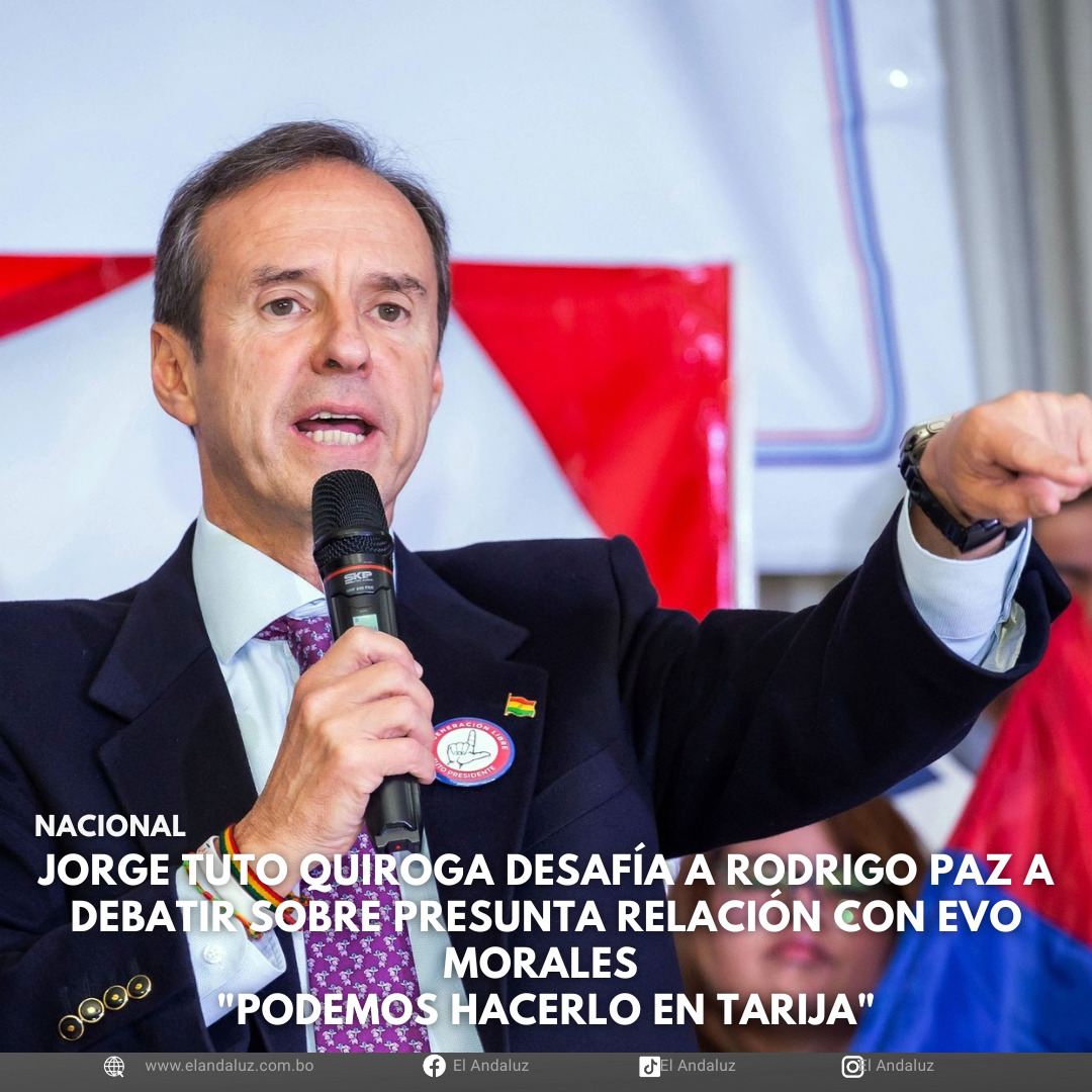 Osmar Arroyo/El Andaluz El candidato presidencial por Libre, Jorge «Tuto» Quiroga invito al candidato del PDC, Rodrigo Paz a debatir,…