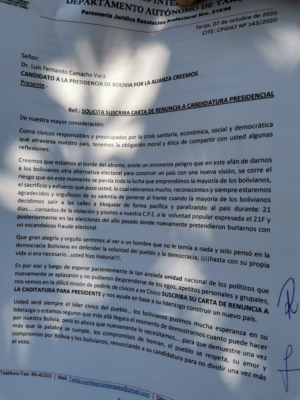 (Roberto A. Barriga/El Andaluz) El director cívico del comité pro interés del departamento de Tarija, Adrián Ávila, a través de…