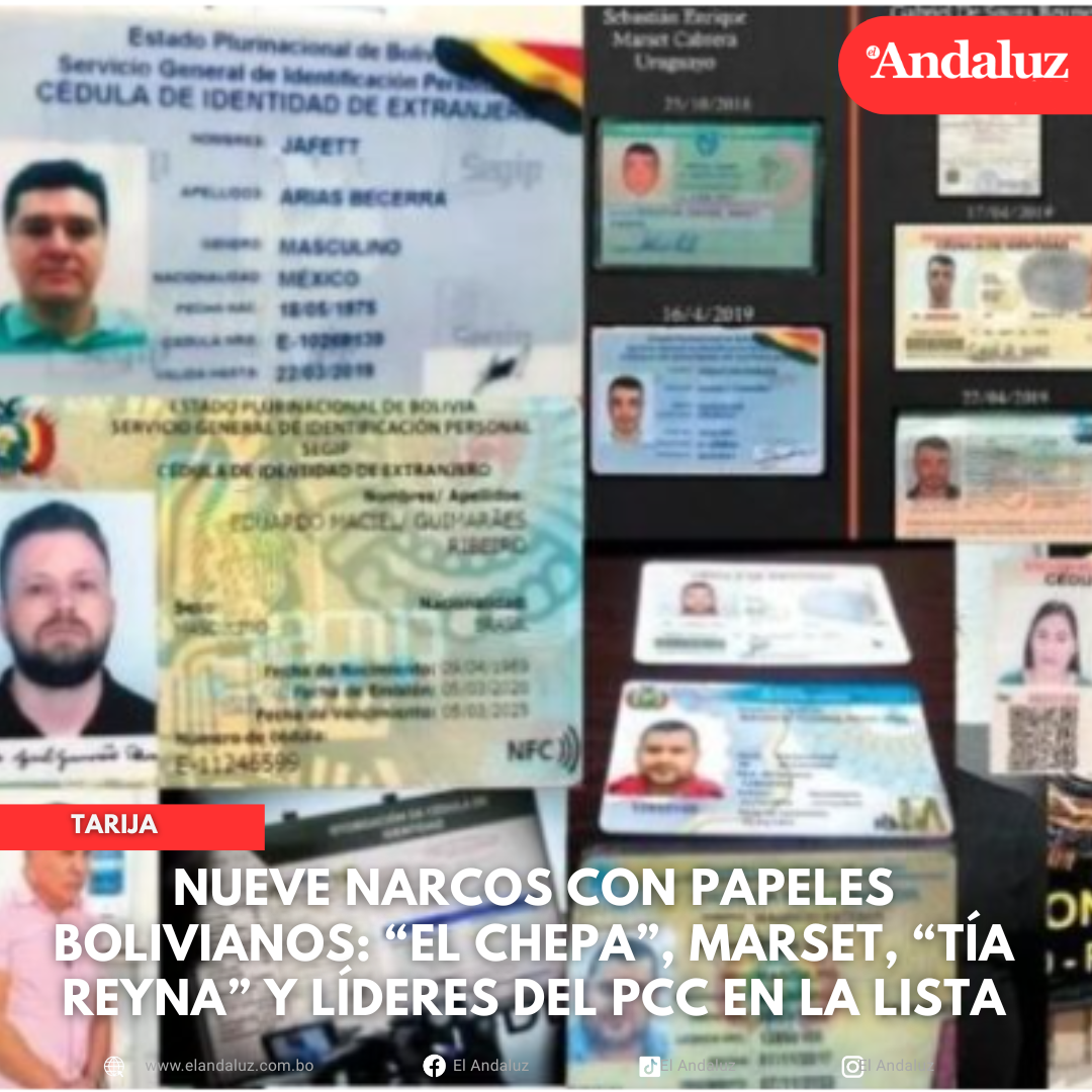 Nueve narcos con papeles bolivianos: “El Chepa”, Marset, “Tía Reyna” y líderes del PCC en la lista