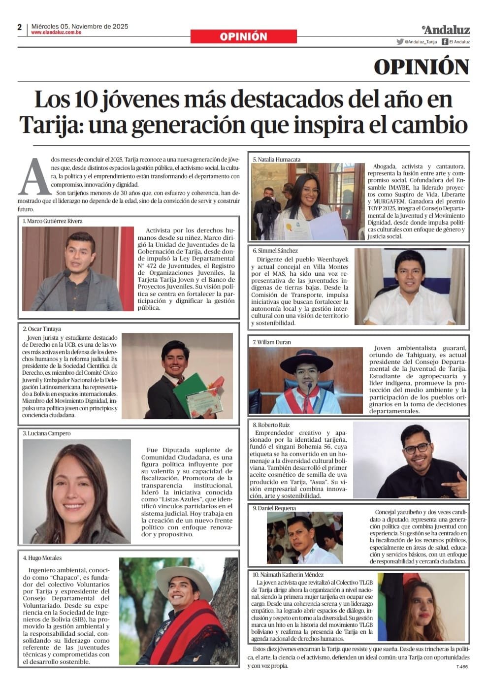 A dos meses de concluir el 2025, Tarija reconoce a una nueva generación de jóvenes que, desde distintos espacios la…